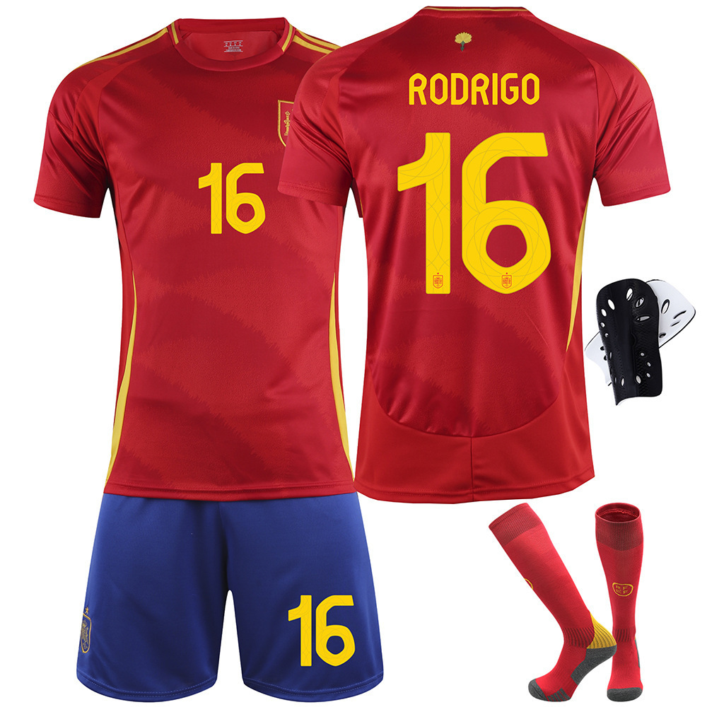 • 25 스페인 메인 레드 로드리 No. 16 + 매칭 양말 + 보호 장비