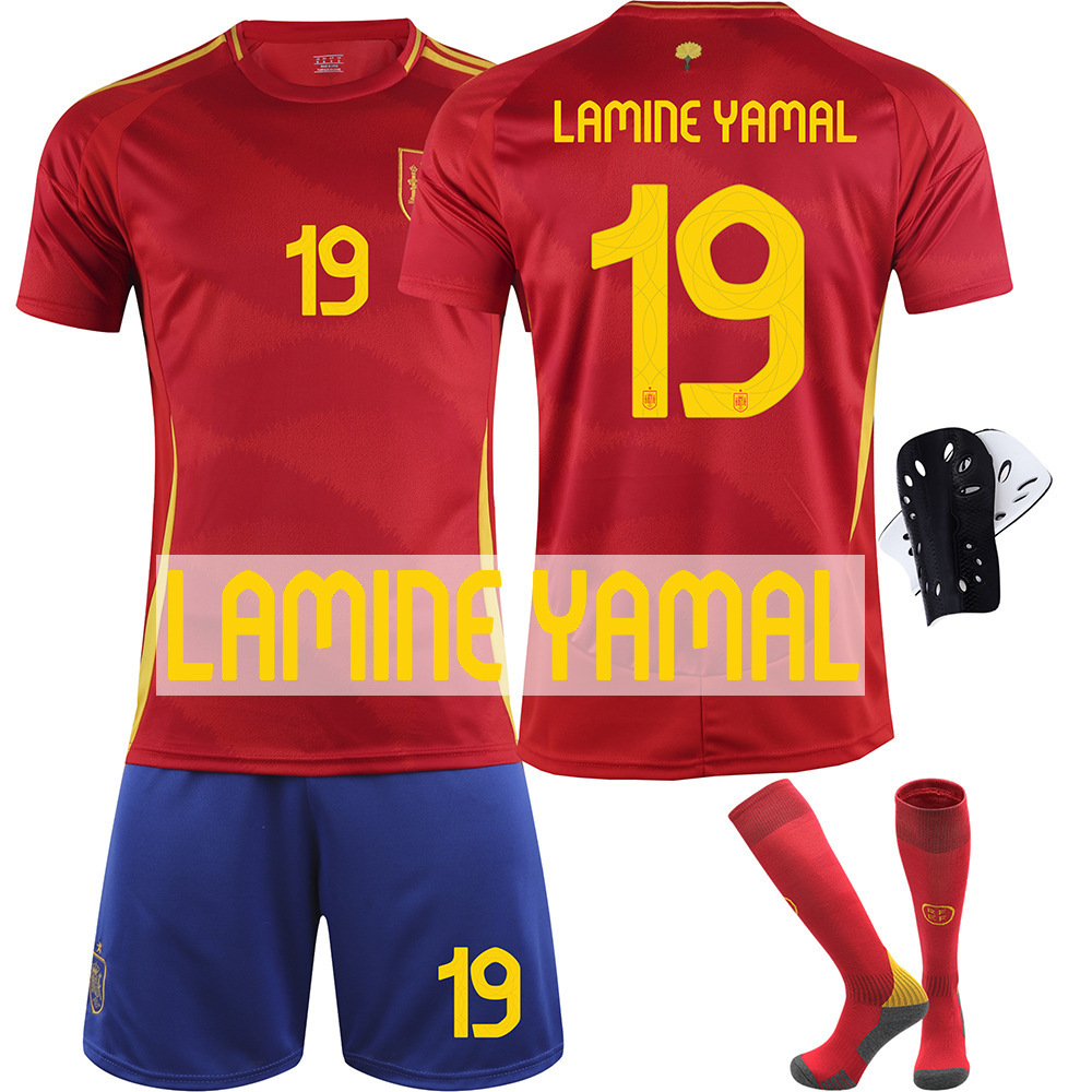 • 25 스페인 메인 레드 야말 No. 19 + 매칭 양말 + 보호 장비