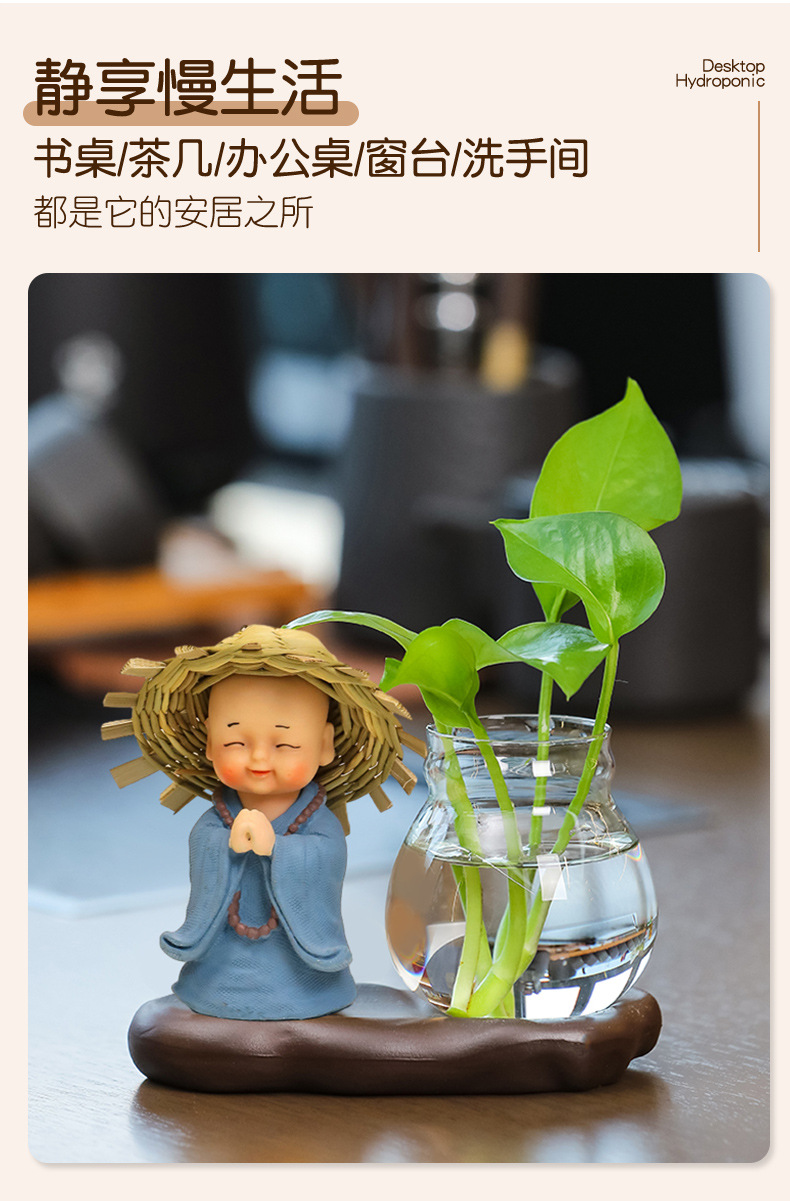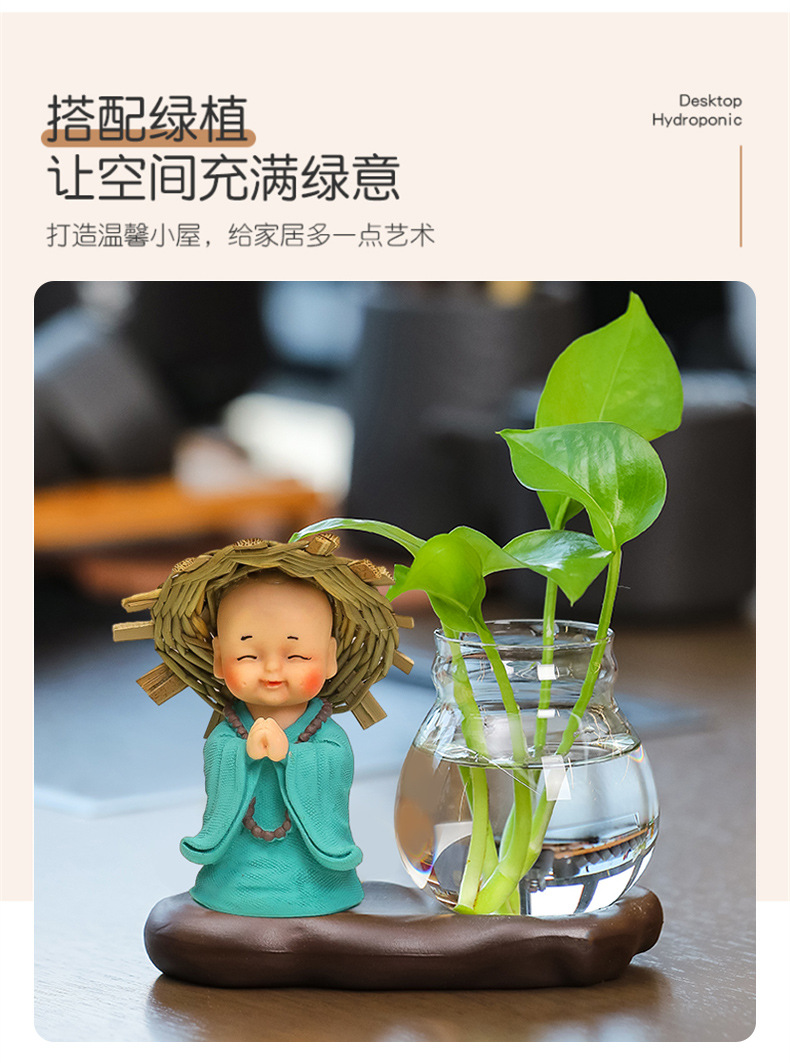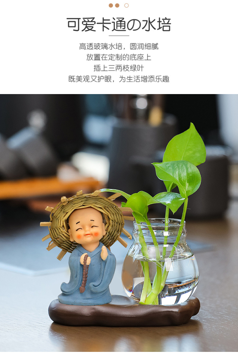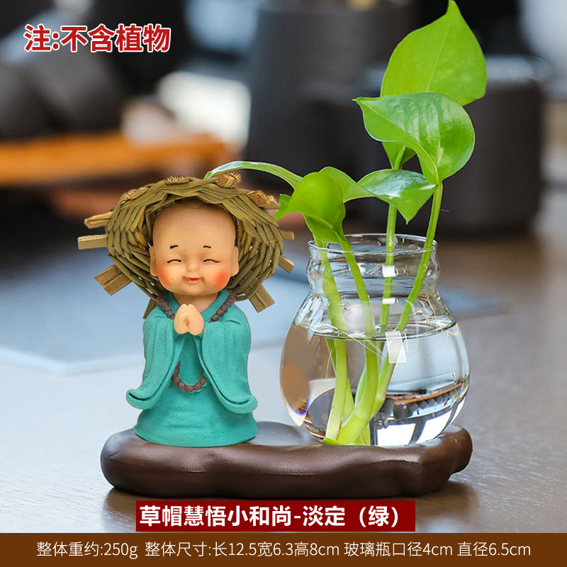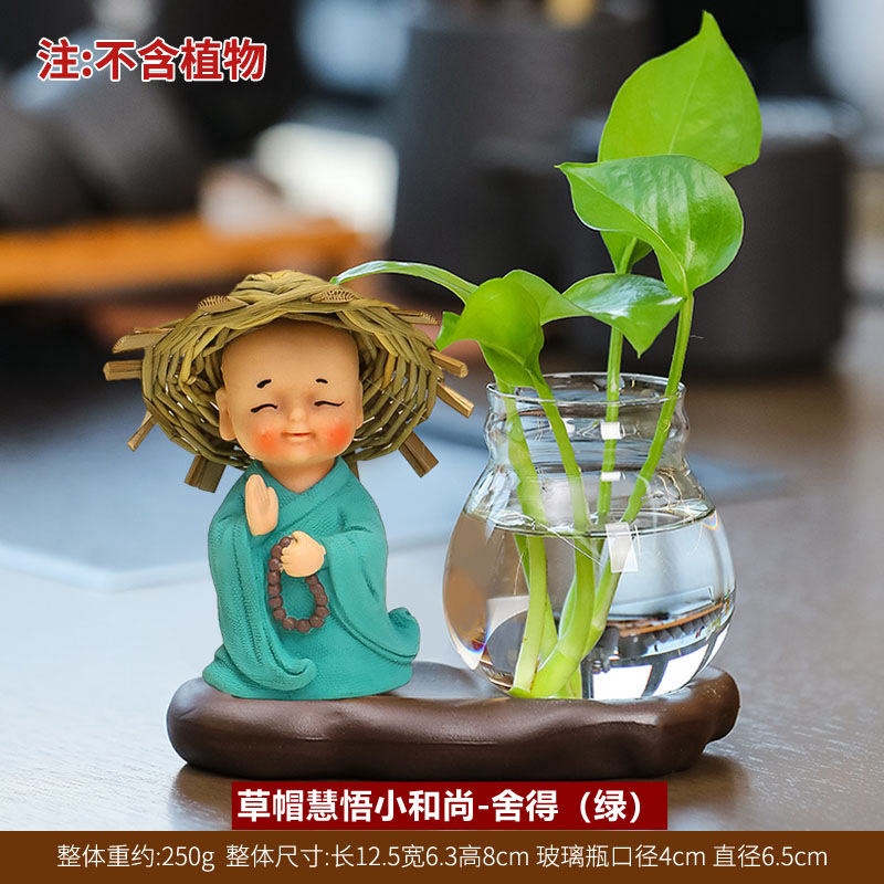 새로운 Huiwu 리틀 스님 그린 로즈 수경 꽃병 데스크탑 장식품 사무실 책상 홈 장식 꽃 유리 물고기 탱크