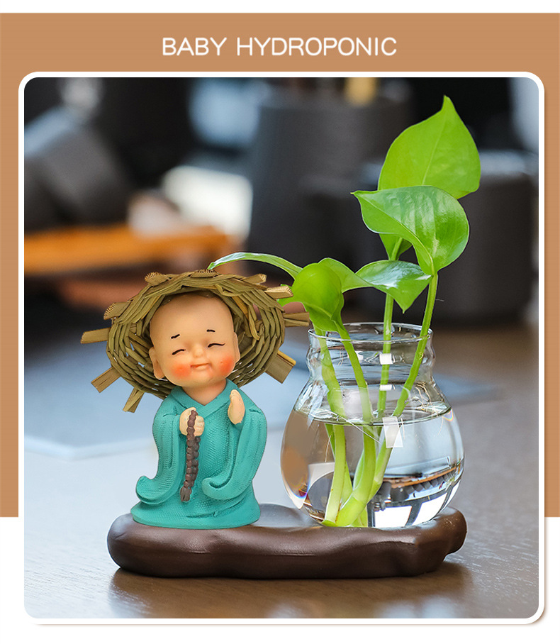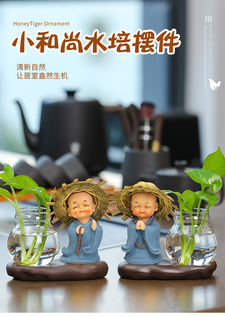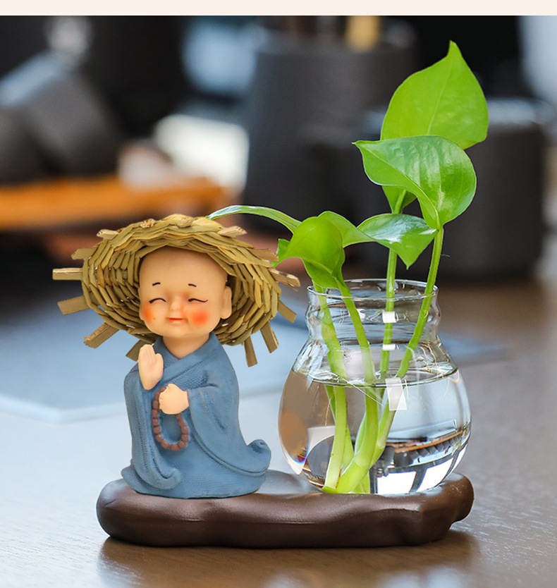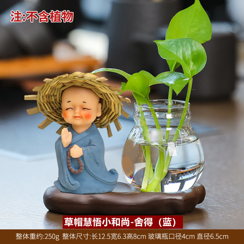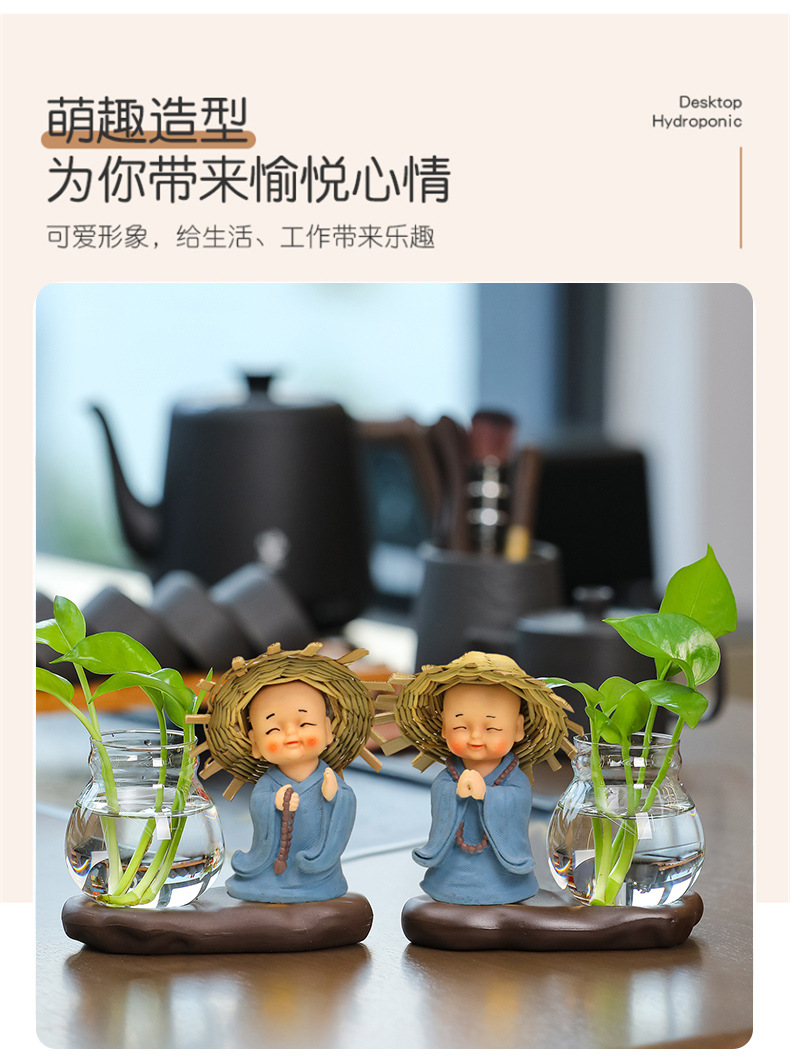 새로운 Huiwu 리틀 스님 그린 로즈 수경 꽃병 데스크탑 장식품 사무실 책상 홈 장식 꽃 유리 물고기 탱크