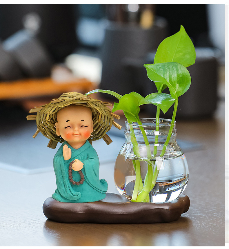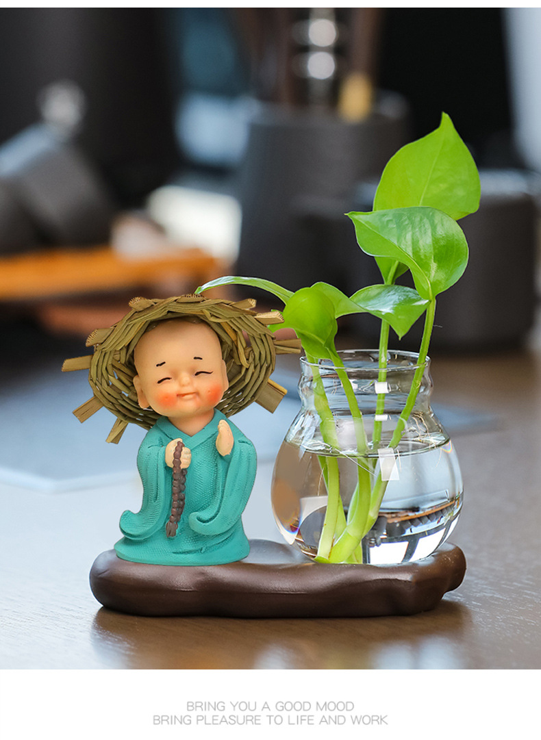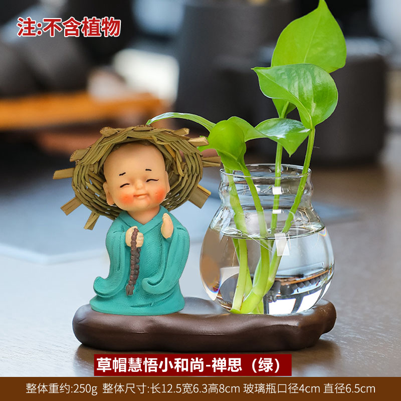 • 명상하는 작은 스님 [녹색] + 수경 꽃병