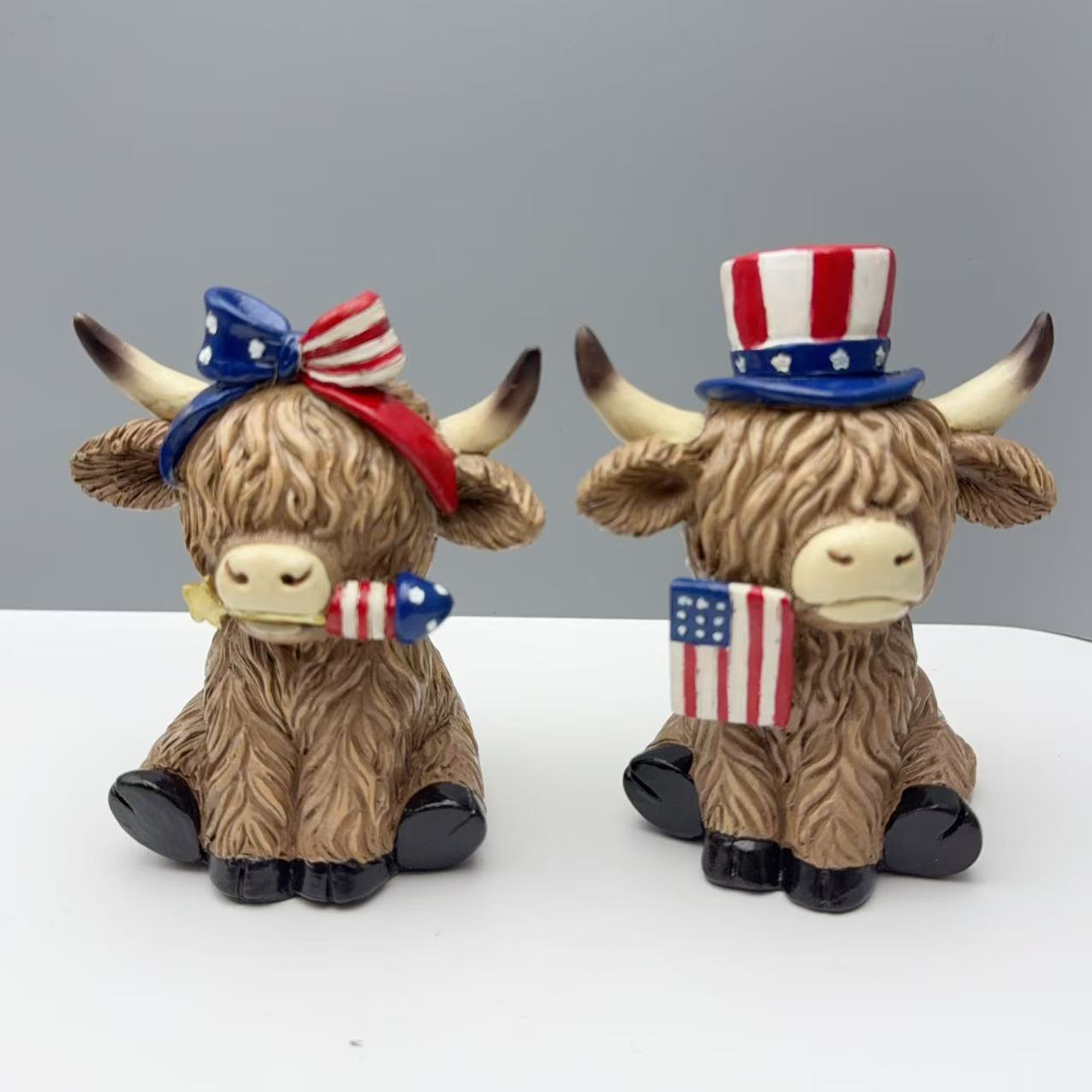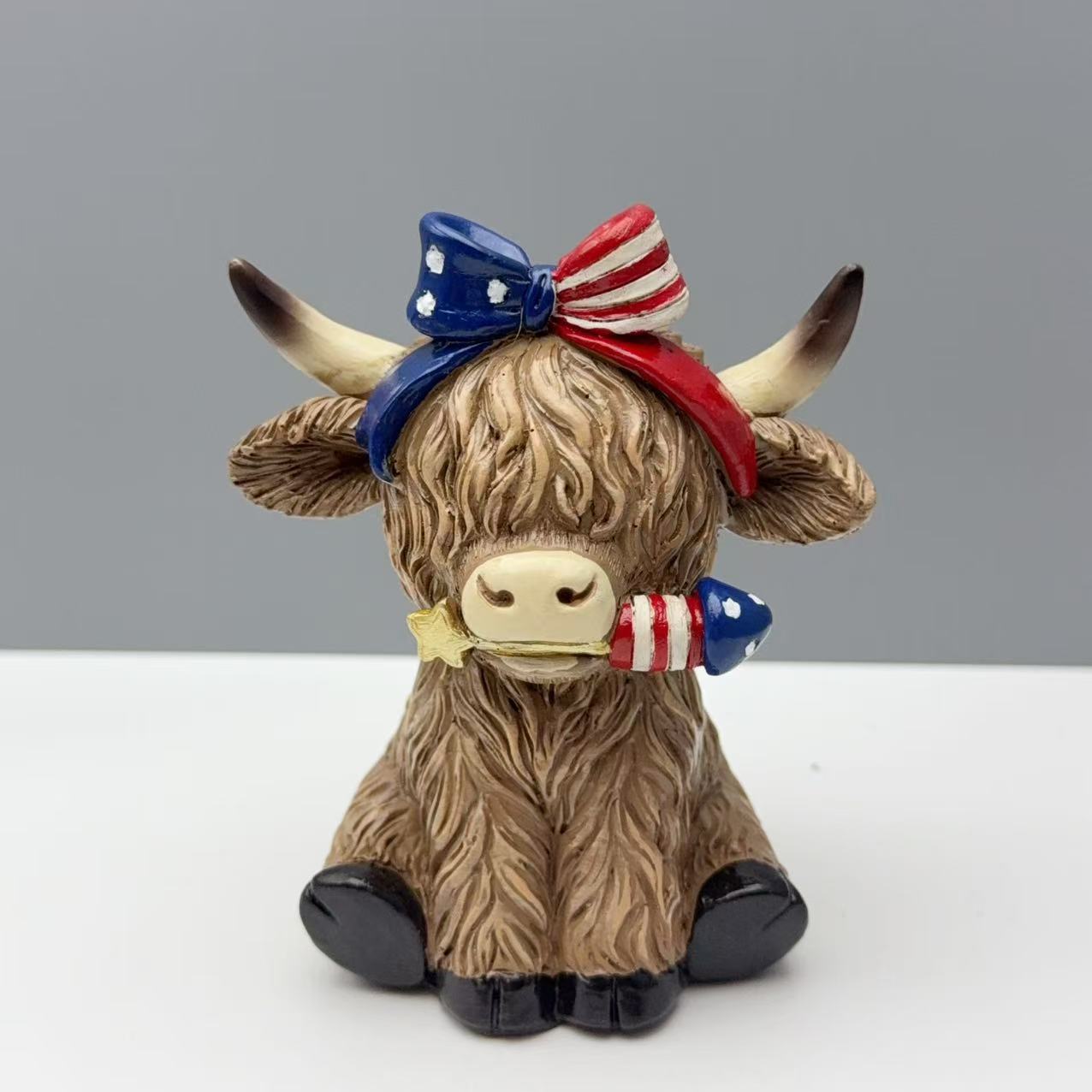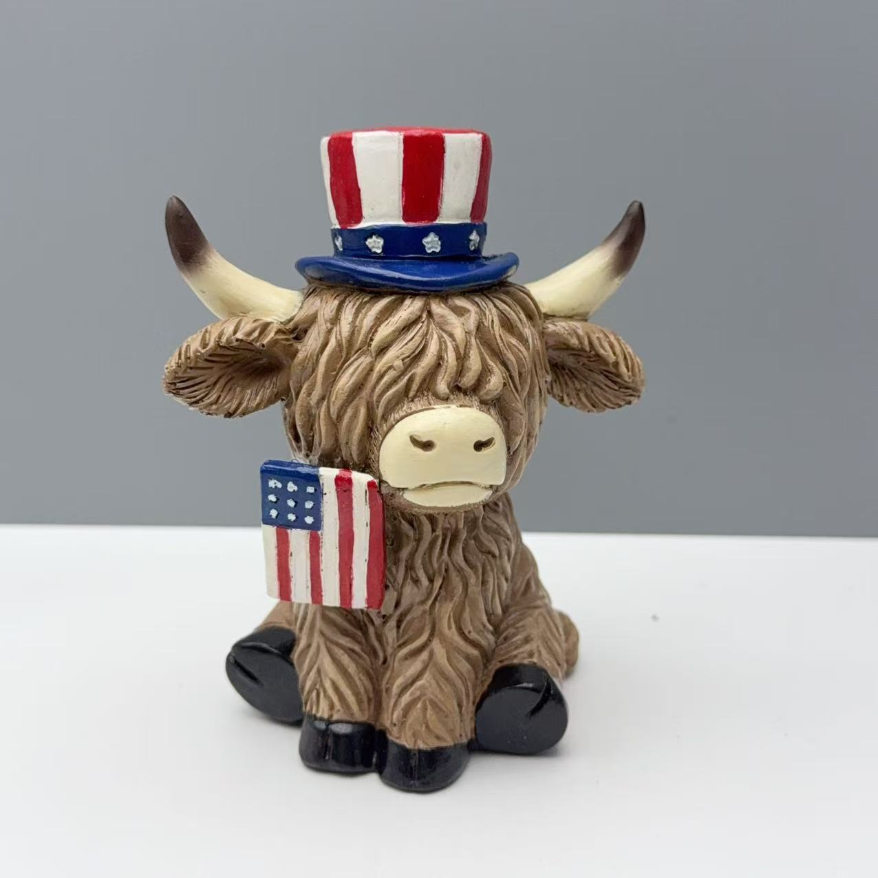 국경 간 독립 기념일 하이랜드 야크 장식 수지 공예 장식품 홈 가든 데스크탑 장식 선물