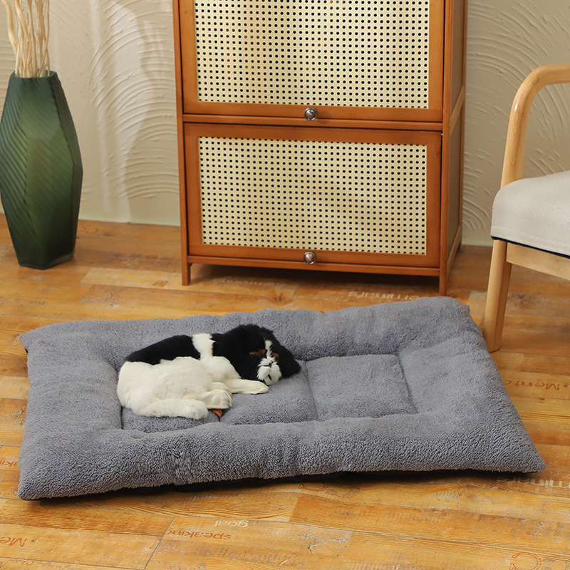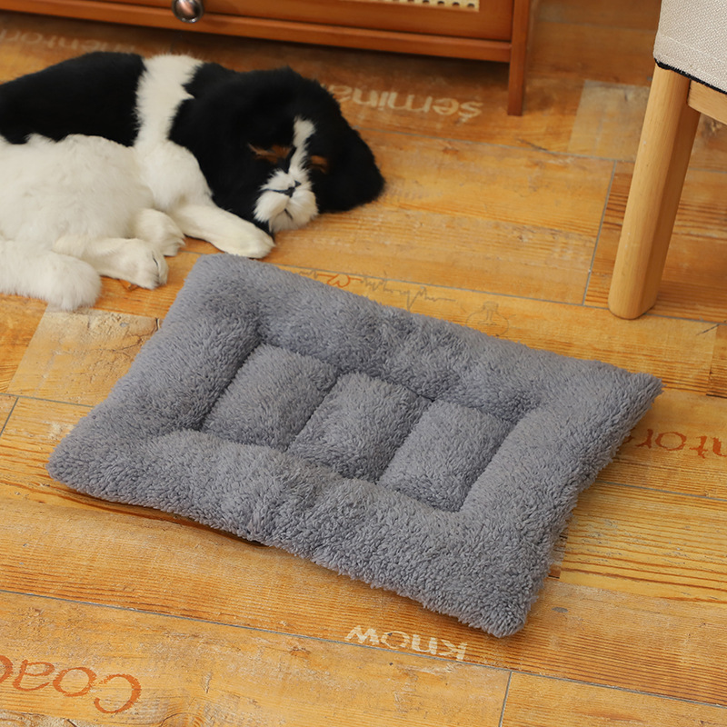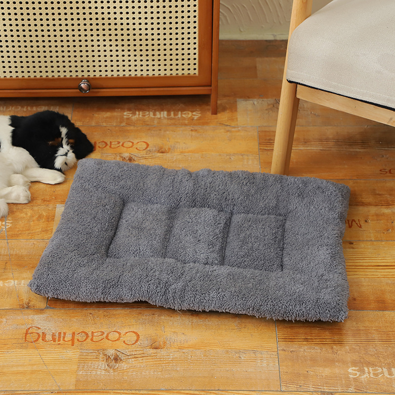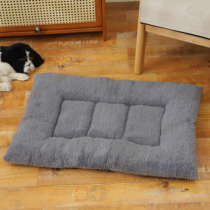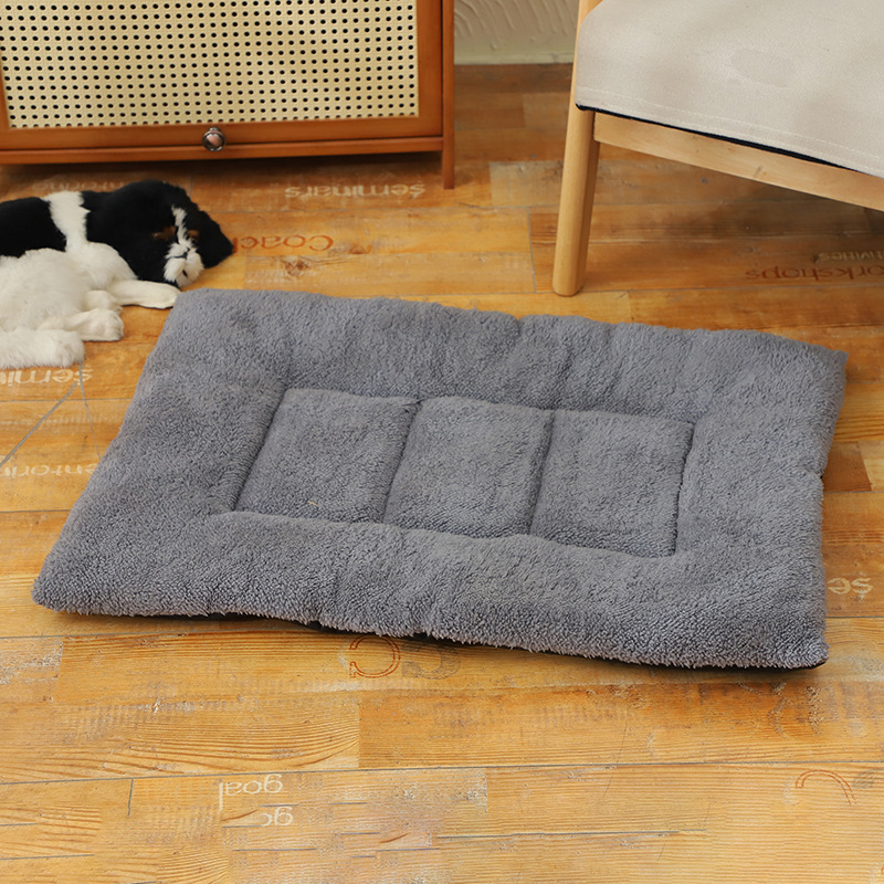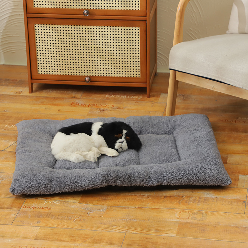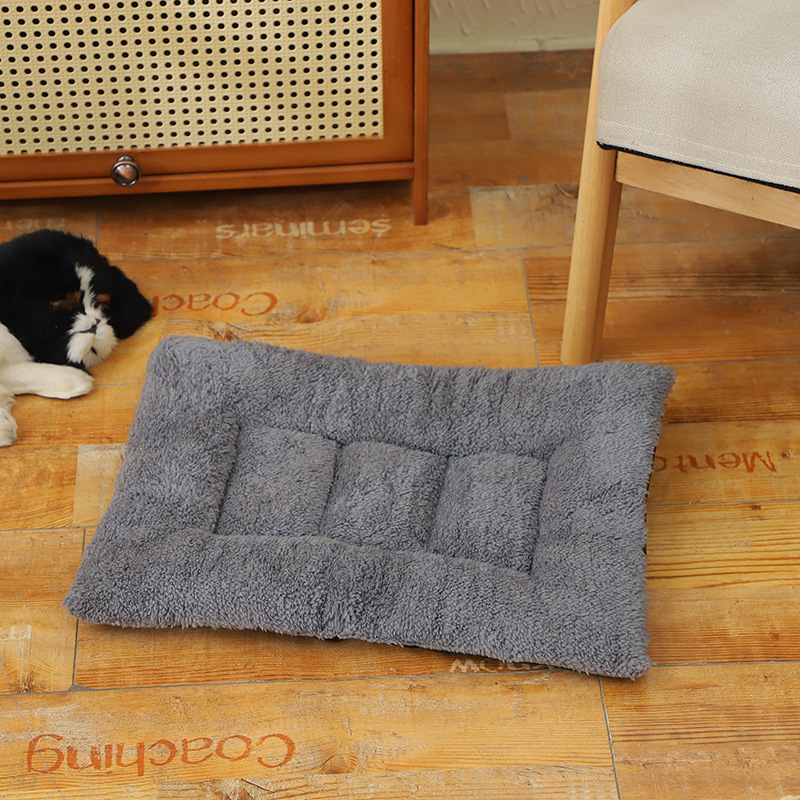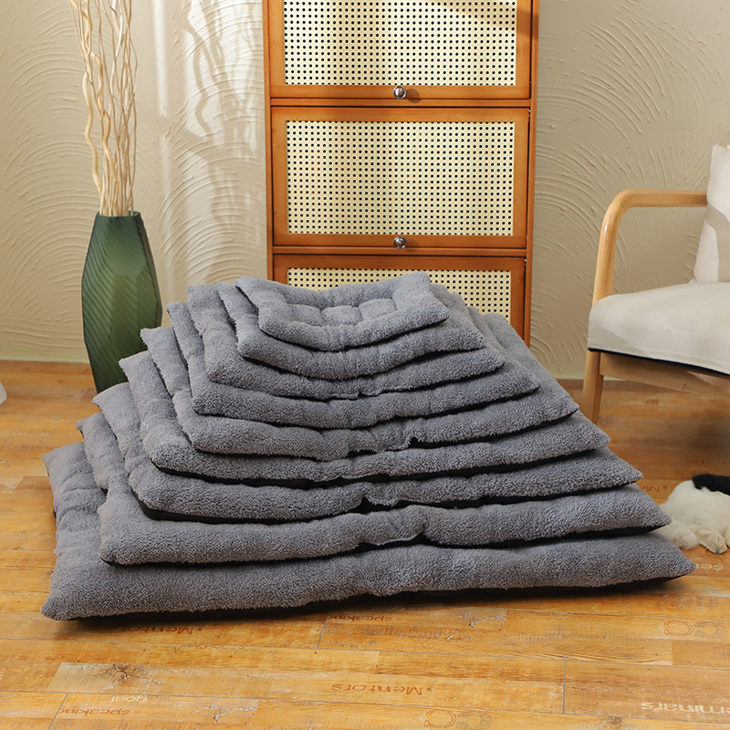 작은, 중간, 큰 개를 위한 회색 사각형 벨벳 쿠션, 사계절 내내 사용하기에 적합한 보편적인 편안한 개 개집, 보편적인 애완 동물 수면 매트