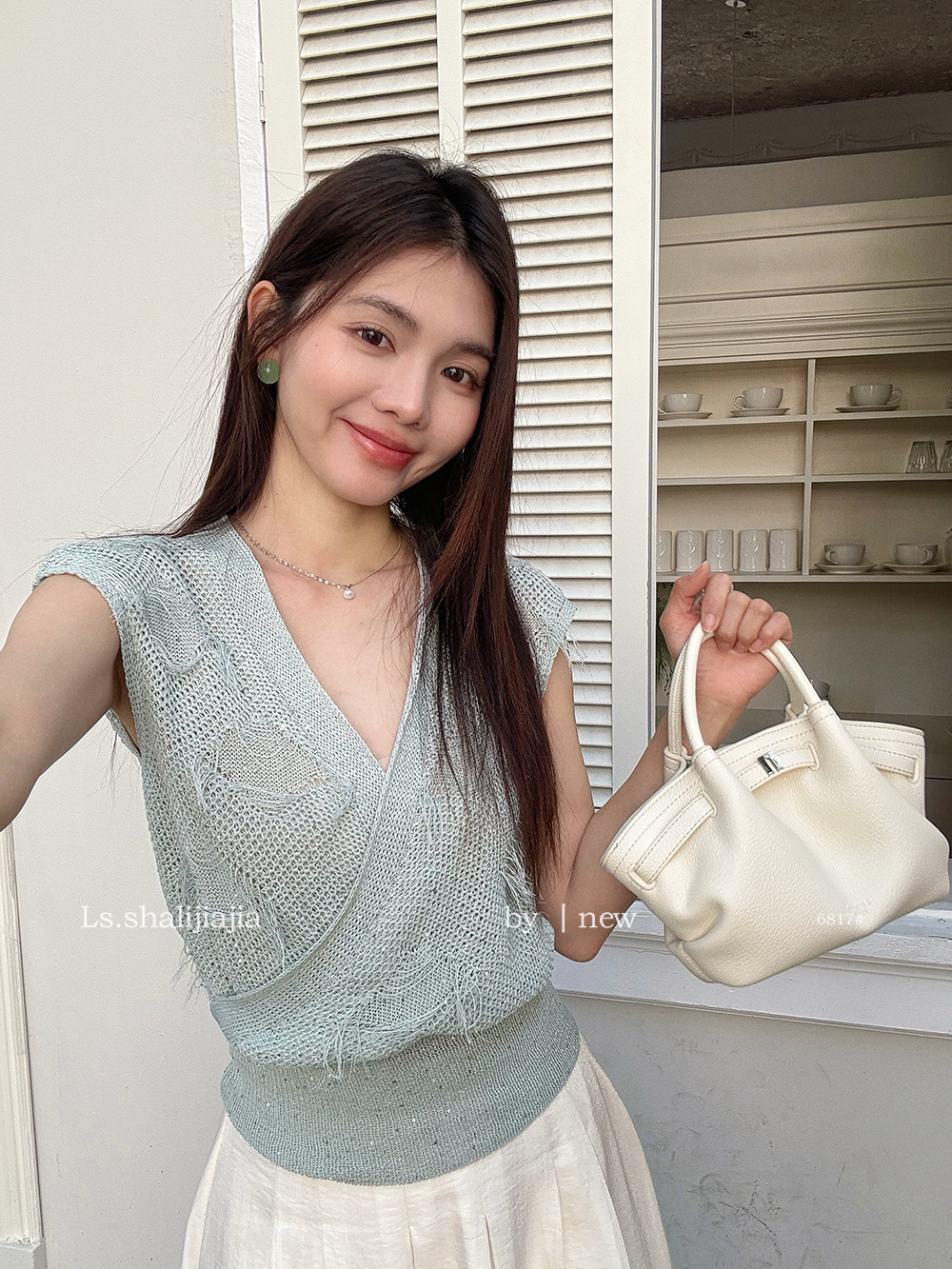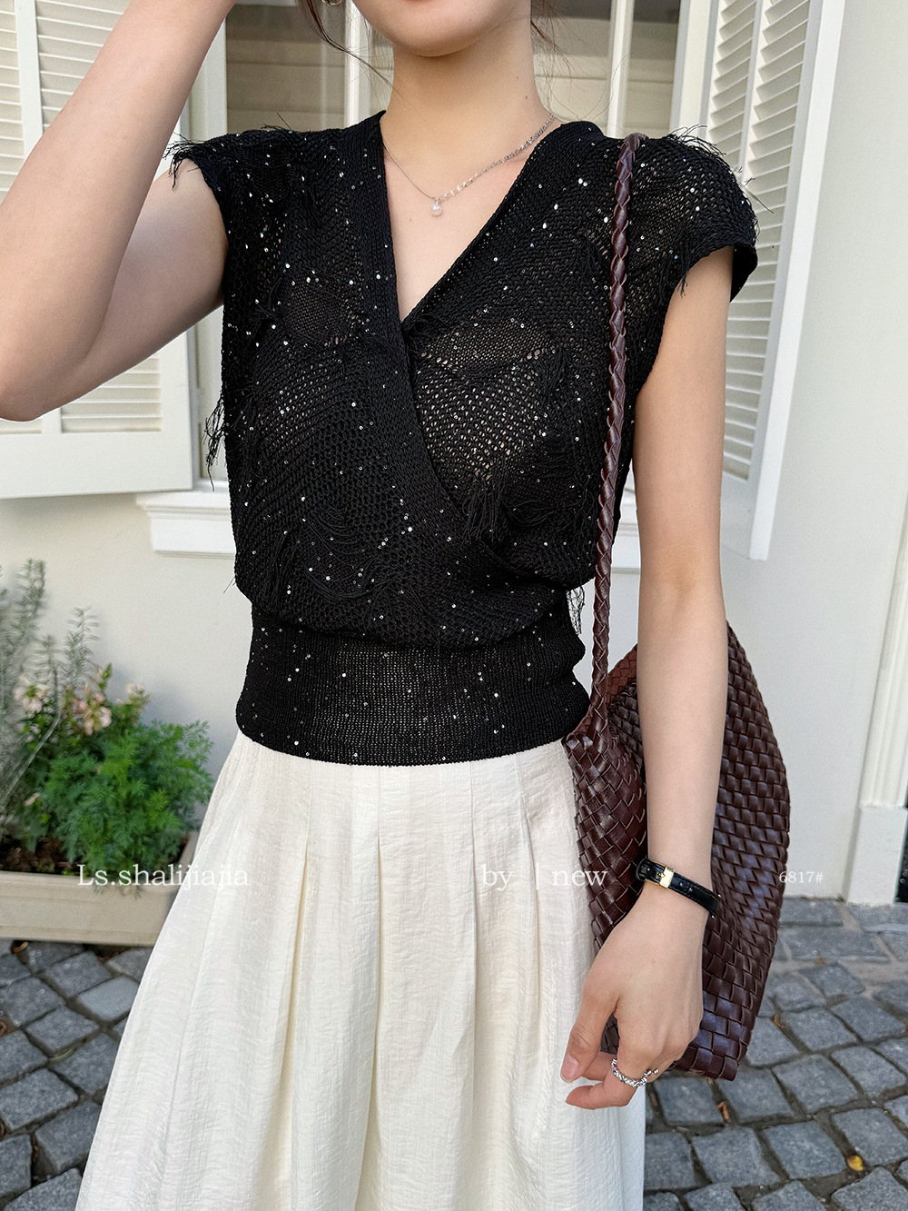 LS 순수한 욕망 V-Neck 디자인 니트 셔츠 여성용 광저우 13 라인 2025 여름 새로운 여성복 6817 #스토어 가기