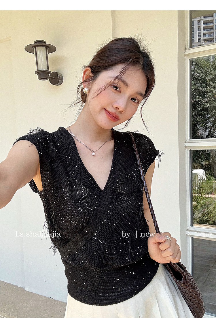 LS 순수한 욕망 V-Neck 디자인 니트 셔츠 여성용 광저우 13 라인 2025 여름 새로운 여성복 6817 #
