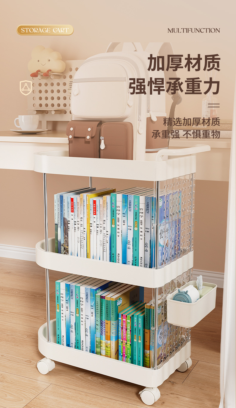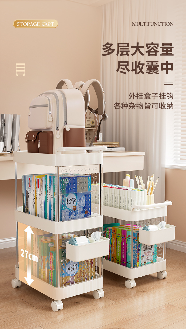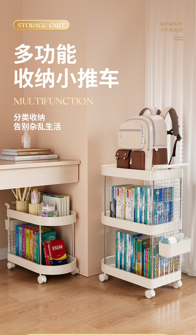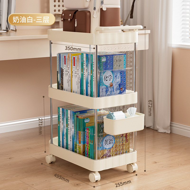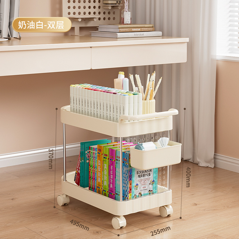 가정용 움직일 수 있는 크림 스타일 다층 트롤리 높은 가치 Schoolbag 스토리지 랙 거실 스낵 장난감 스토리지 랙