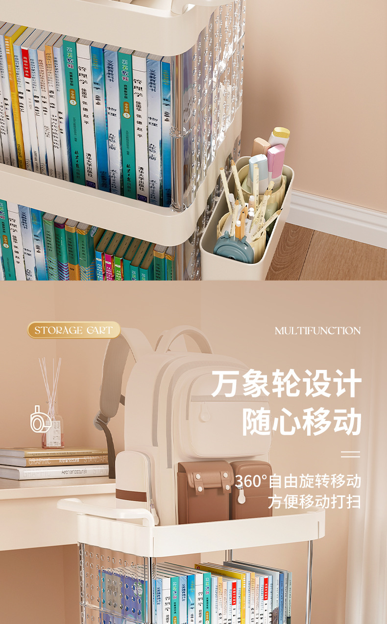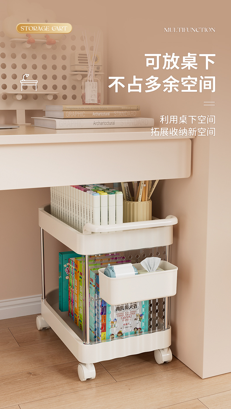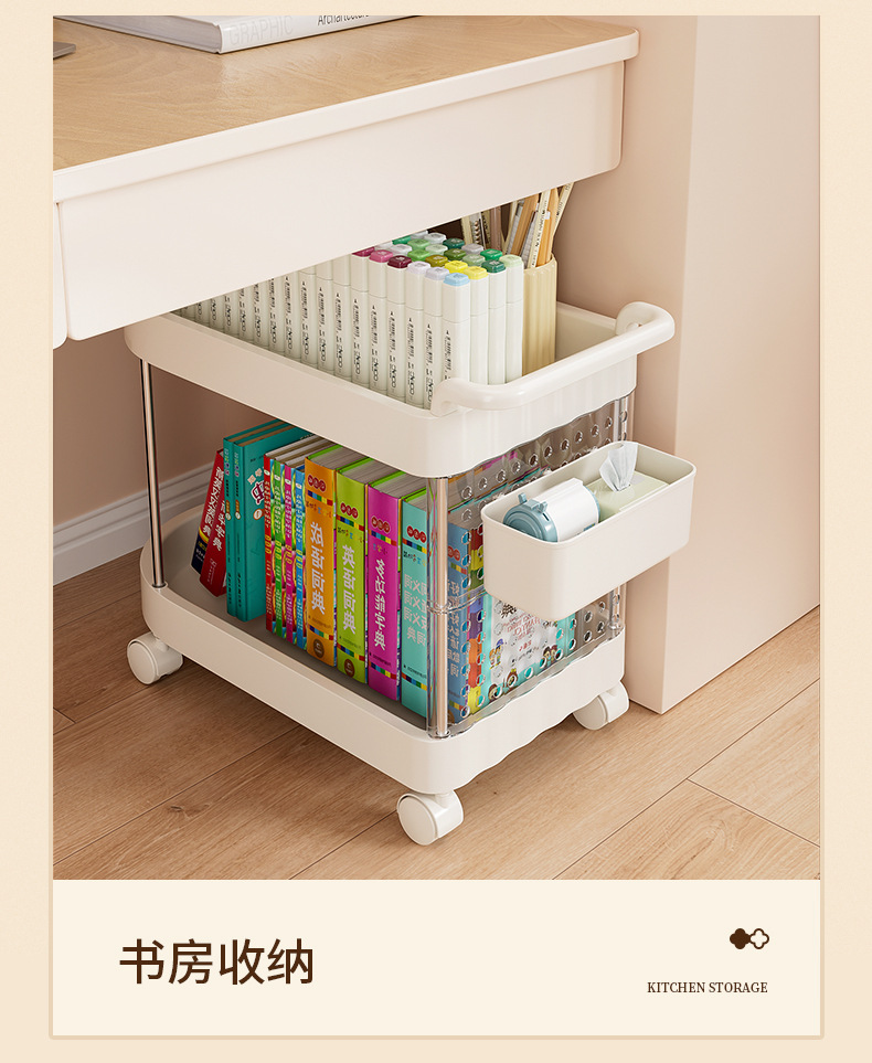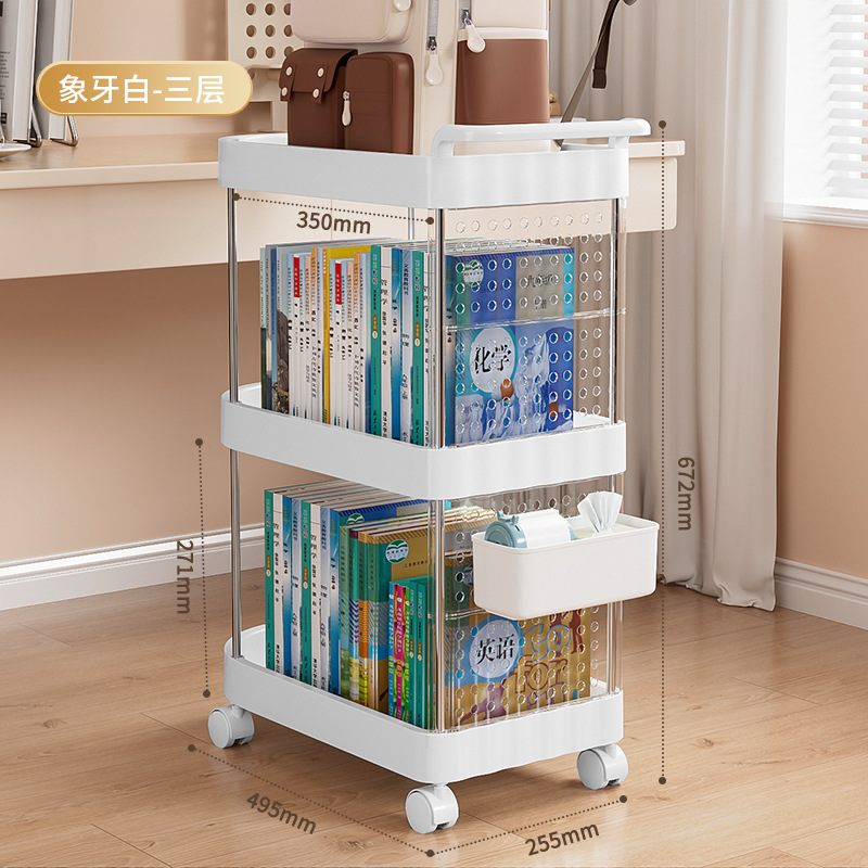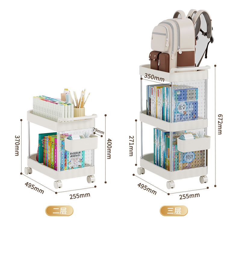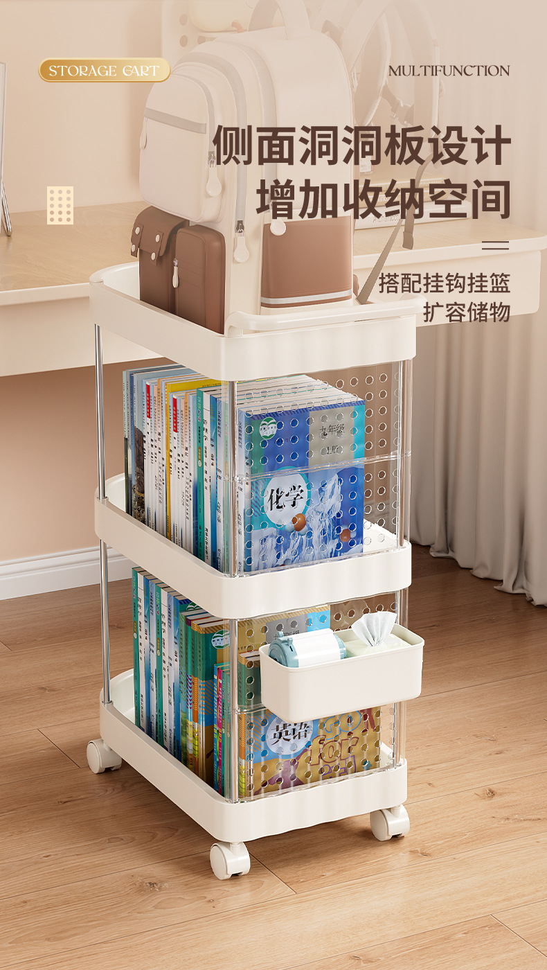 가정용 움직일 수 있는 크림 스타일 다층 트롤리 높은 가치 Schoolbag 스토리지 랙 거실 스낵 장난감 스토리지 랙