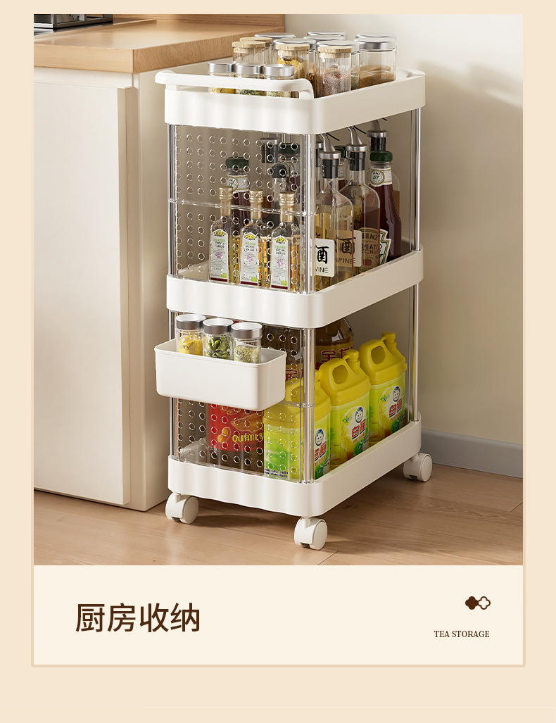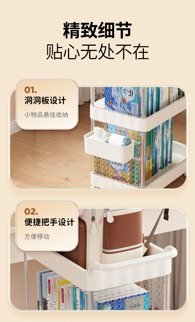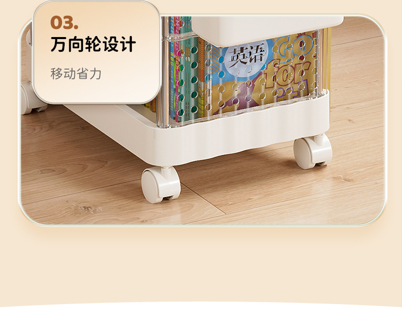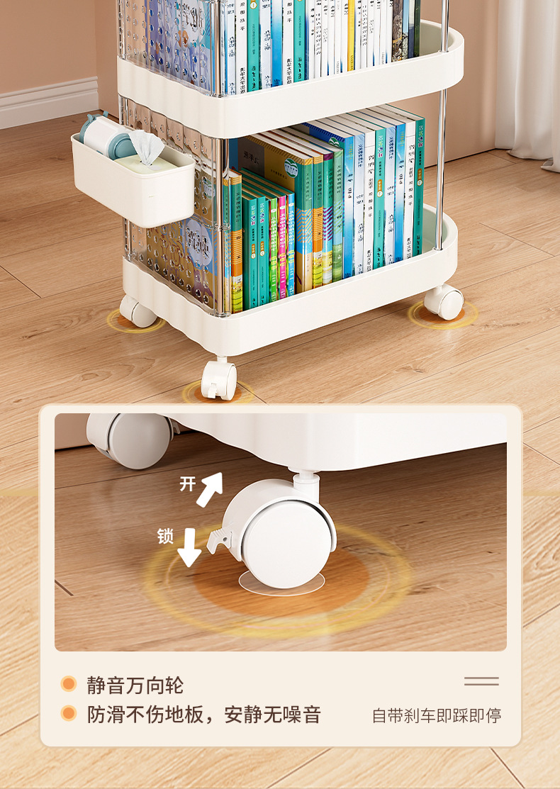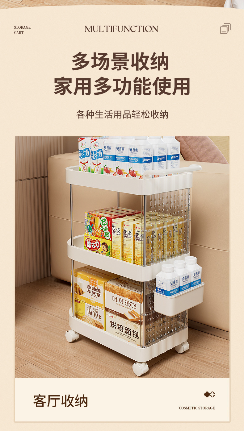 가정용 움직일 수 있는 크림 스타일 다층 트롤리 높은 가치 Schoolbag 스토리지 랙 거실 스낵 장난감 스토리지 랙