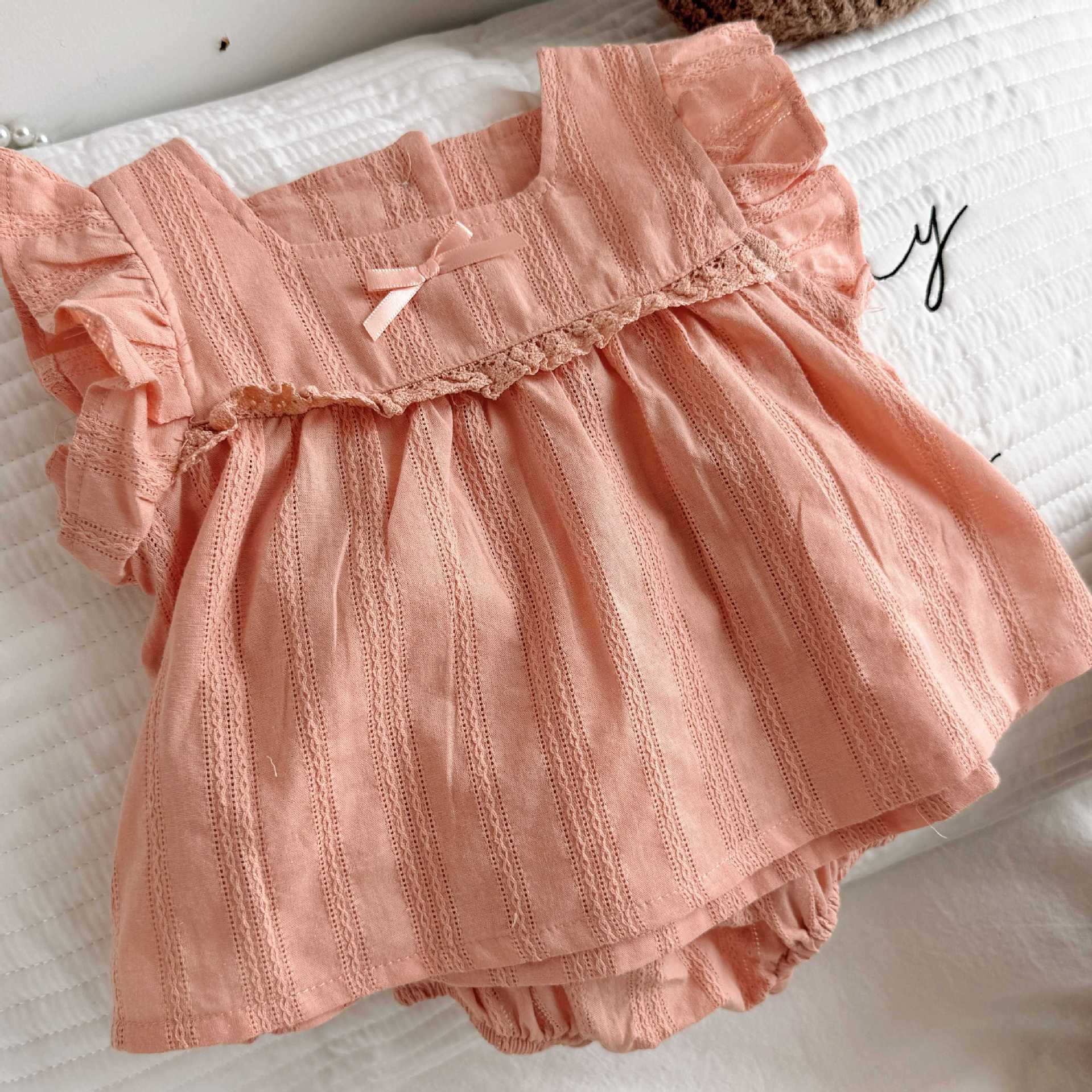 봄과 여름 새로운 면 비행 슬리브 셔츠 바지 아기 소녀 달콤한 외국 스타일 공주 세트 투피스 세트