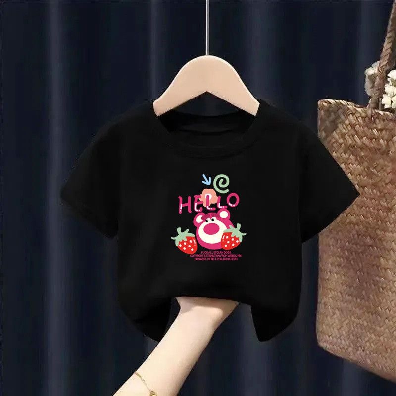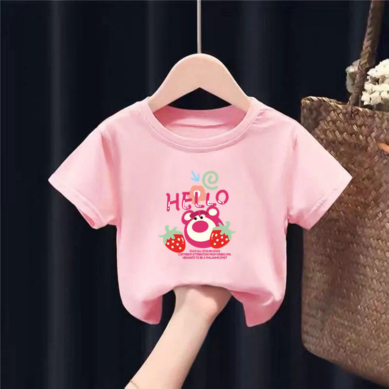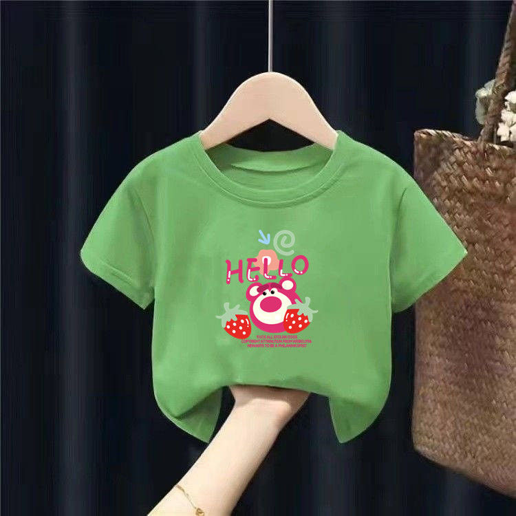아동용 반팔 소녀 순면 베이비 티셔츠 2025 새로운 여름 어린이상의 소년 소녀용 바닥 셔츠스토어 가기