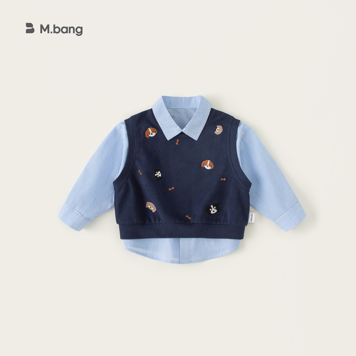봉, 어린이 봄 투피스 소년 '라스트라이프 셔츠 강아지 수놓은 니트 조끼 한국식 세트