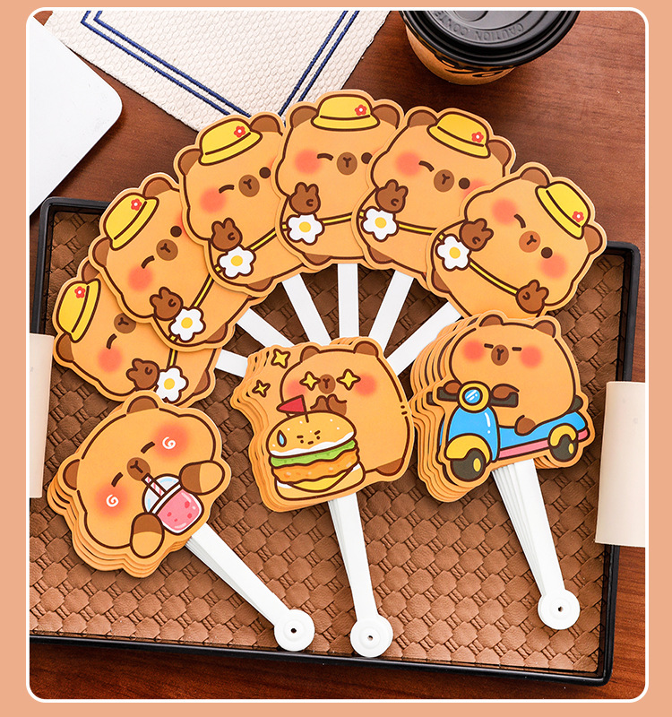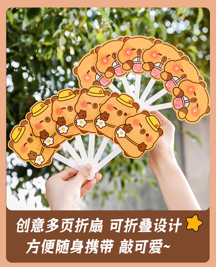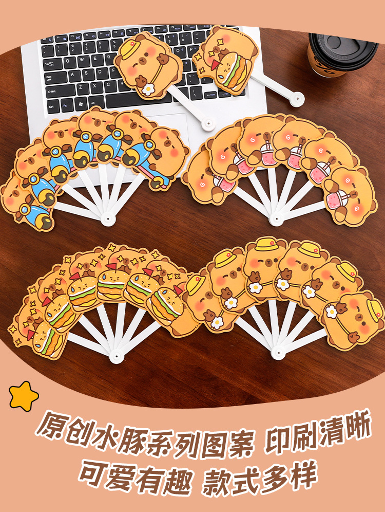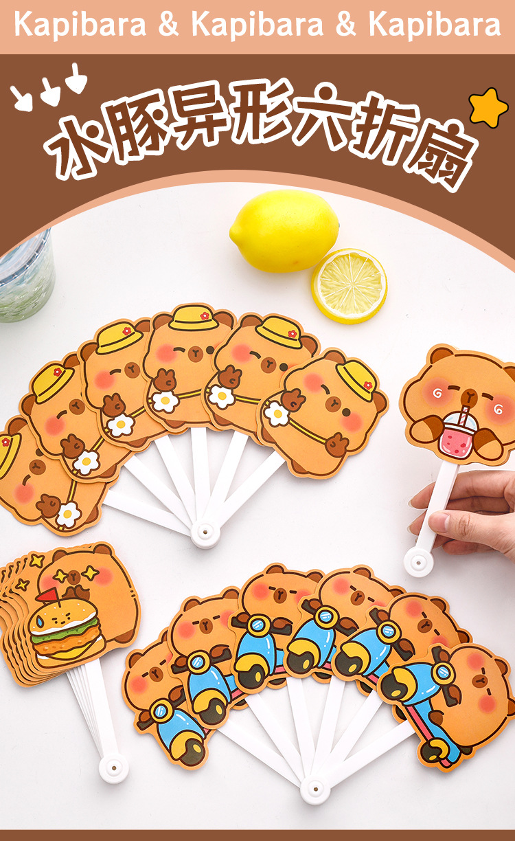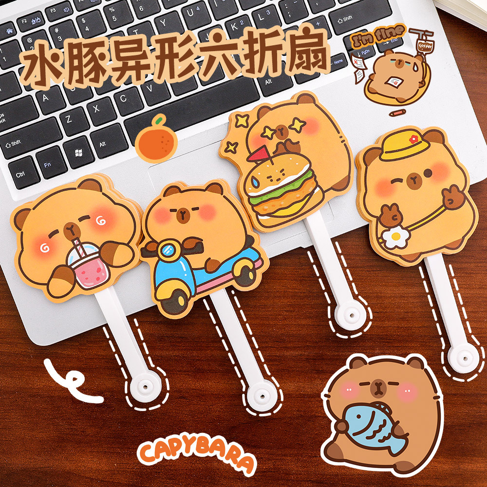 Capibala 모양의 여섯 접는 팬 Ins 귀여운 Capybara 여름 캐리 온 접는 팬 학생들에게 작은 선물을 밀어
