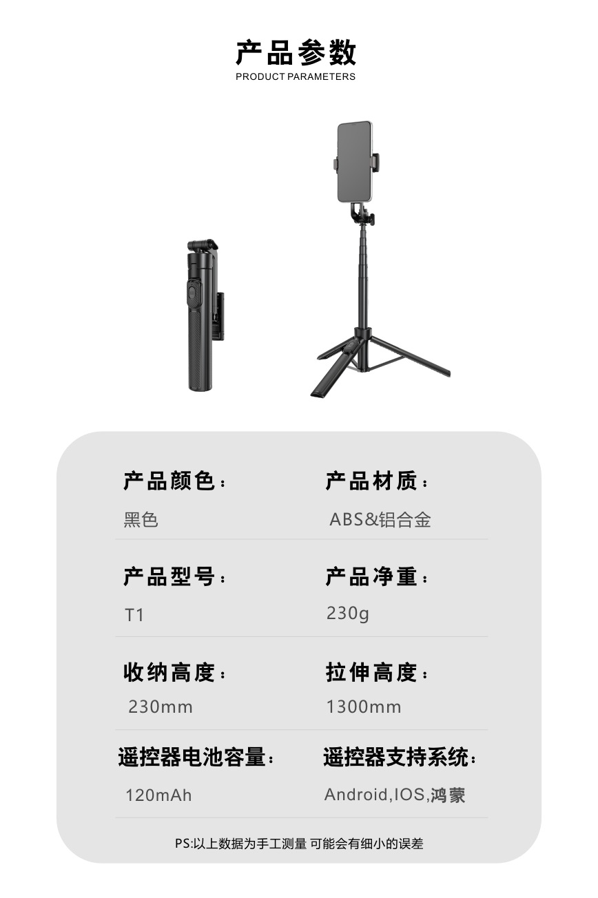 새로운 휴대폰 블루투스 셀카봉 T1 플로어 스탠딩 라이브 방송 손떨림 방지 접이식 삼각대 휴대폰 홀더 사진 유물스토어 가기