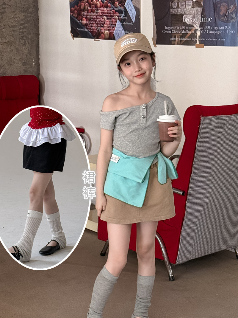 25 여름 고등학교 어린이 및 소녀 눈부심 방지 작업복 스커트 반바지 A- word Retro American Hip Short Culottes