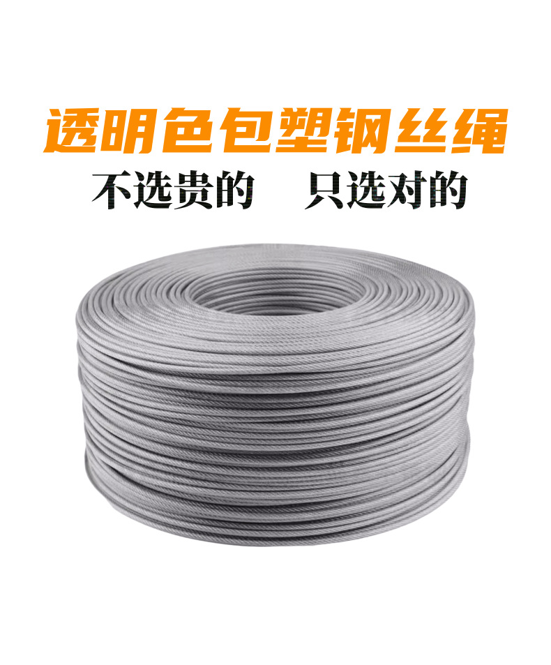 • 업그레이드된 아연 도금 투명 플라스틱 코팅 강철 와이어 로프 4mm-50m
