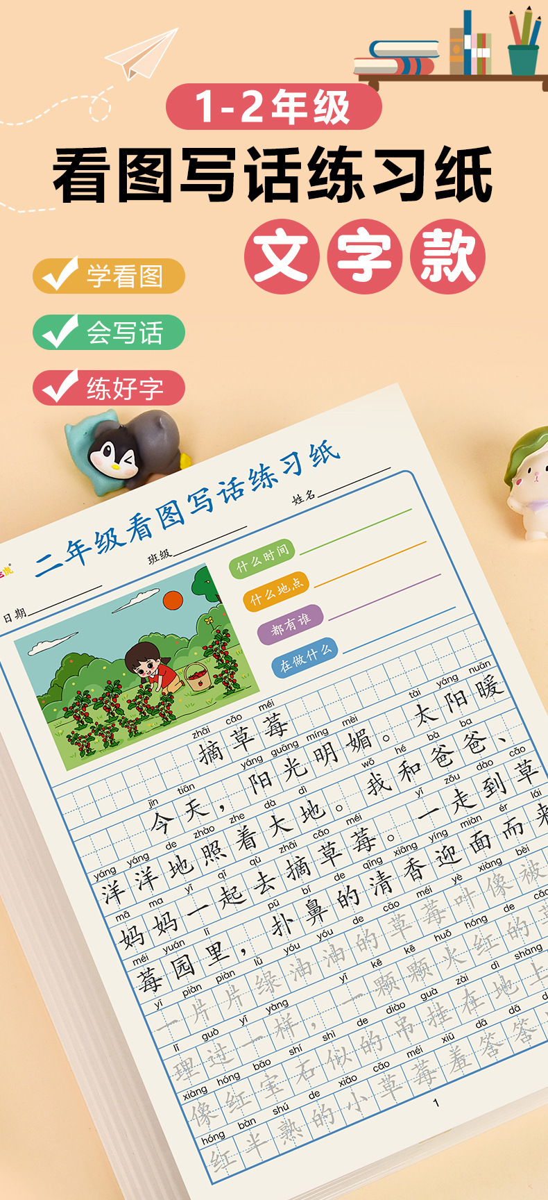 그림을 보고 글쓰기, 초등학생을 위한 1, 2학년 캘리그라피 연습, 작문 능력 향상을 위한 일일 연습 1권 및 2권 특별 훈련스토어 가기