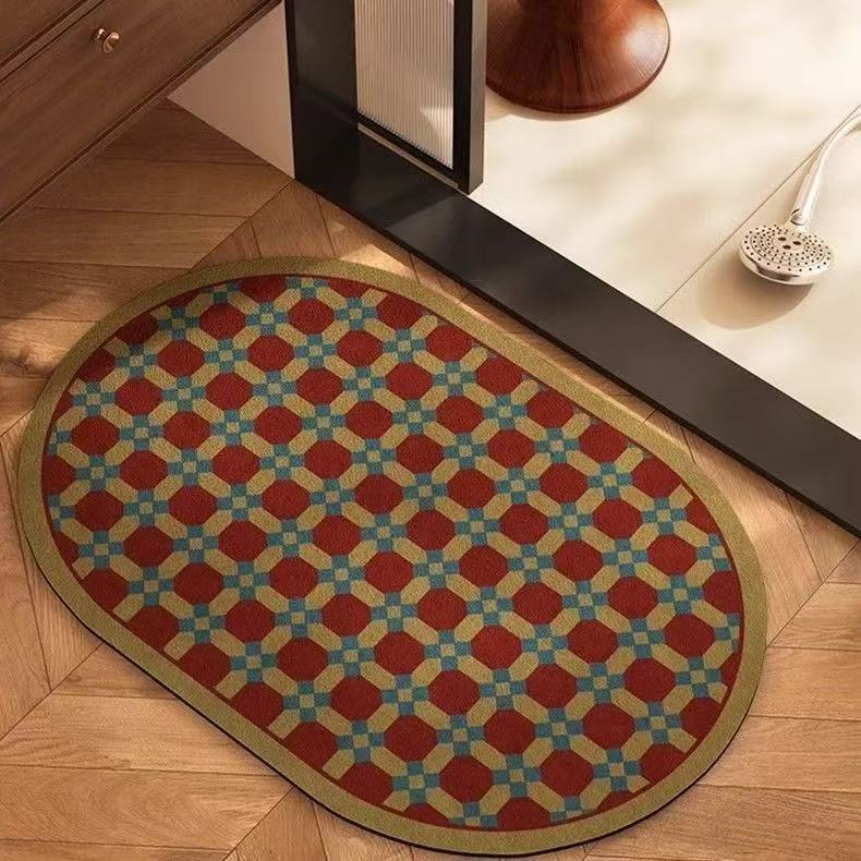 레트로 스타일 욕실 바닥 매트 다이아몬드 진흙 흡수성 빠른 건조 미끄럼 방지 손 세척 화장실 문 매트 중간 녹색 카펫스토어 가기