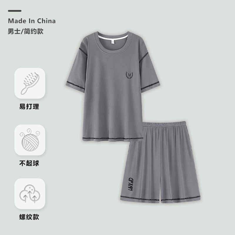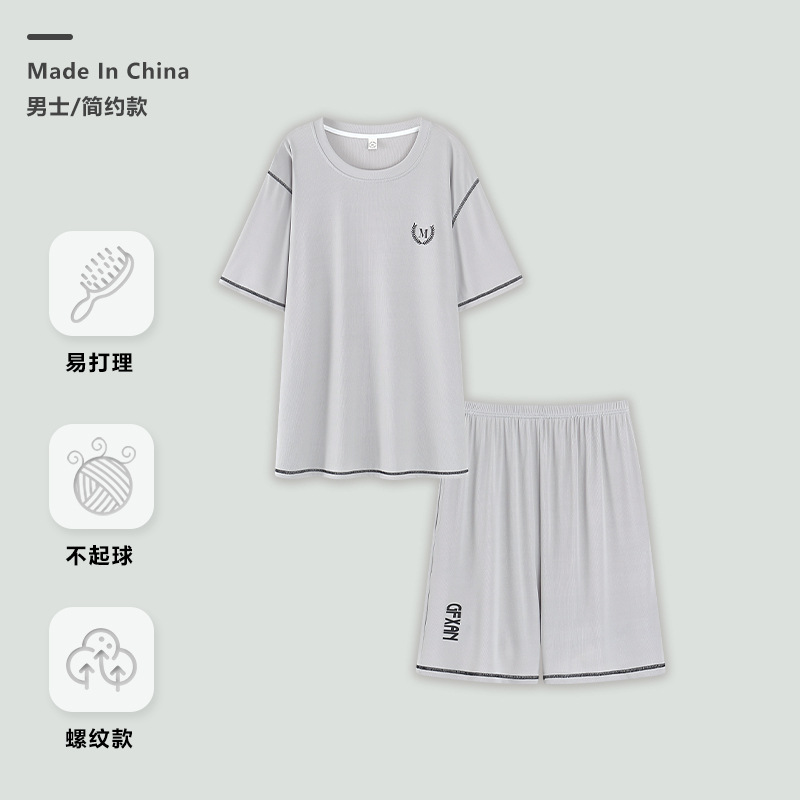 아이스 실크 파자마 남자 여름 스레드 반팔 세트 한국식 플러스 사이즈 반바지 아웃웨어 쿨 느낌 홈 의류스토어 가기
