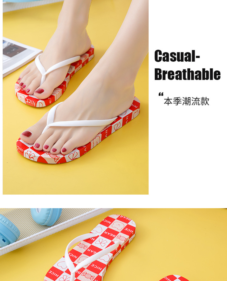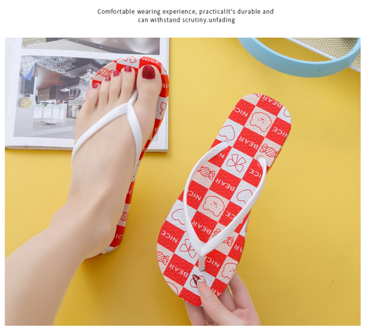 흡입 필름 인쇄 소녀 플립 플롭 2025 여름 새로운 플랫 힐 플라스틱 미끄럼 방지 여성 플립 플롭 비치 슬리퍼스토어 가기