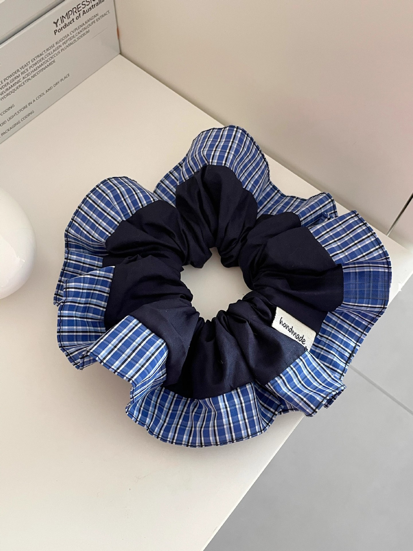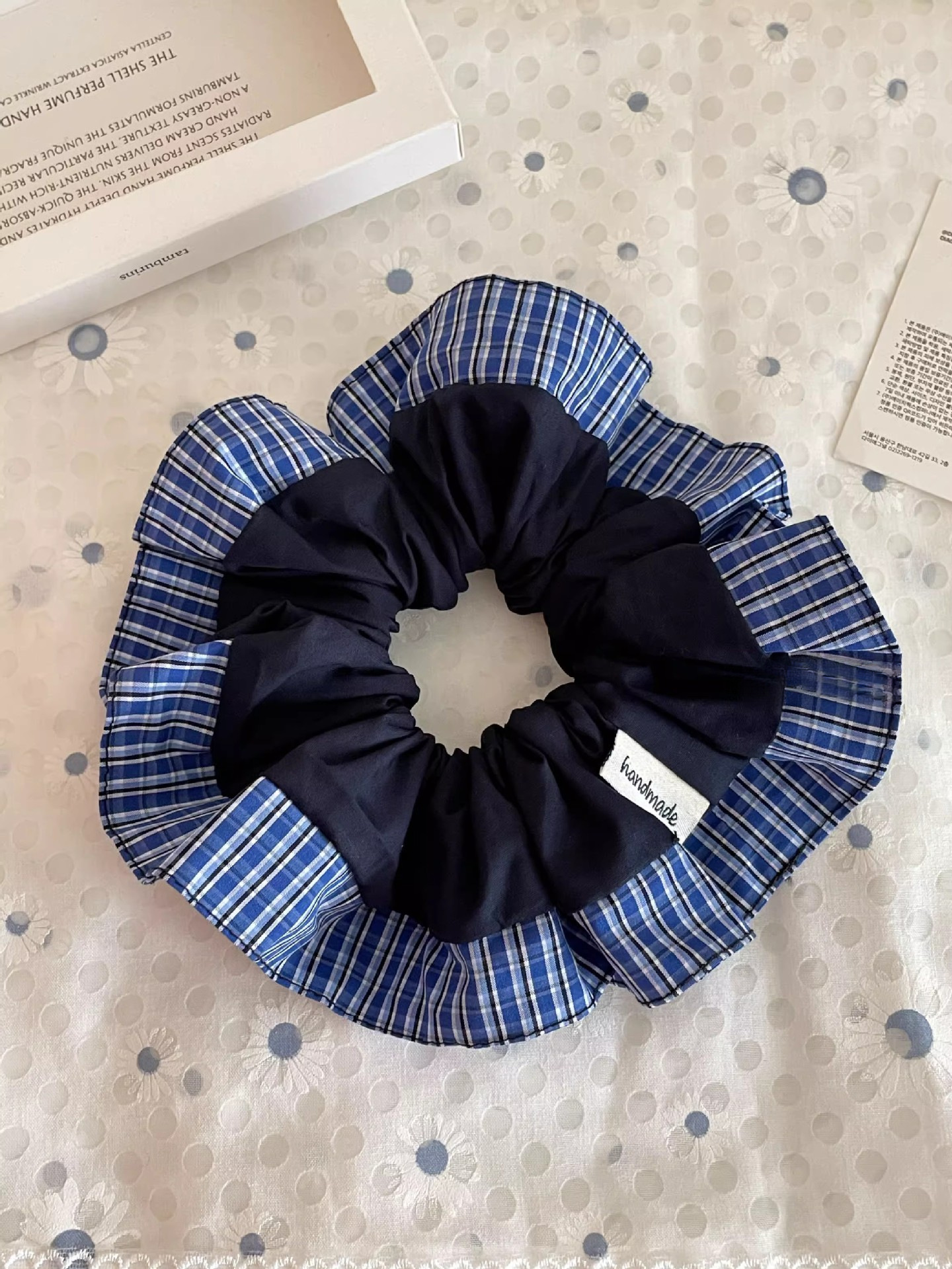 블루 체크 무늬 하이 엔드 레트로 대학 스타일 대형 직분 헤어 링 틈새 볼 헤드 로프 초기 가을 새 헤어 로프 헤어 액세서리스토어 가기