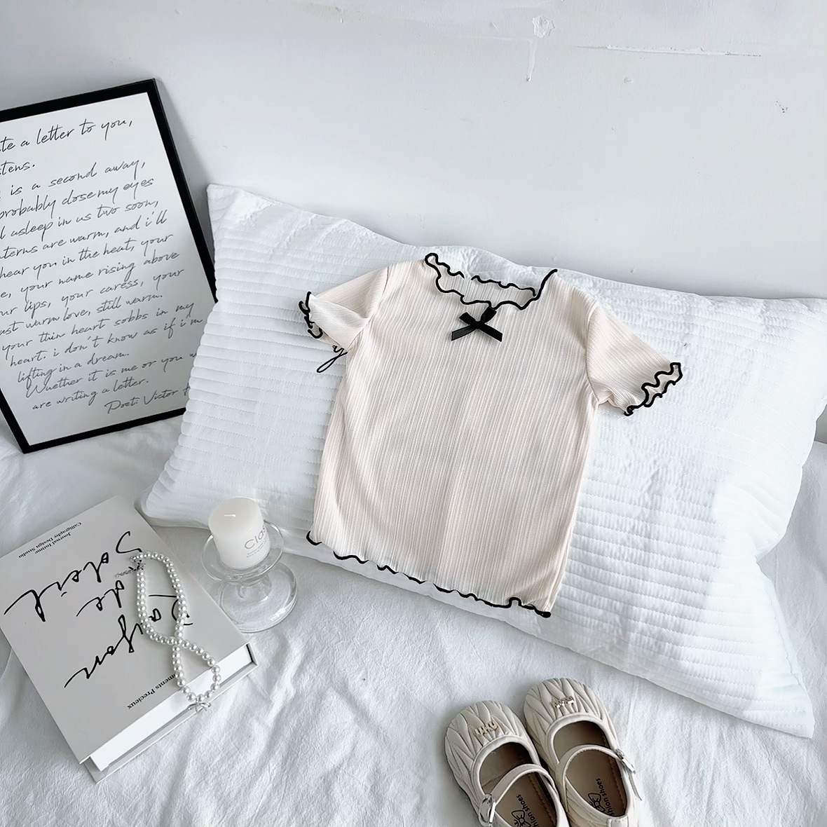 우드-이어 엣지 신형 아이스실크 탑 쿨보우 올매치 탑으로 신형 걸스 한국식 반소매 여름 원피스스토어 가기