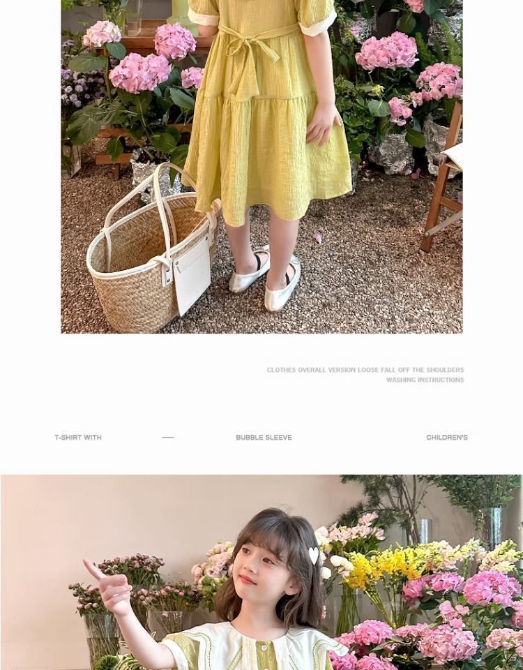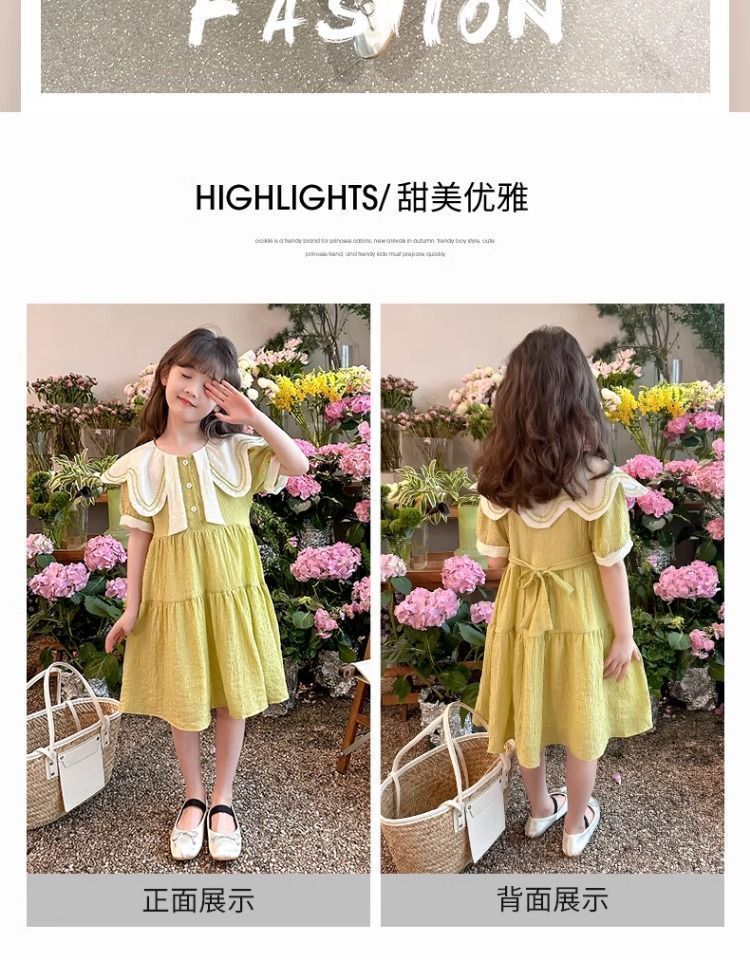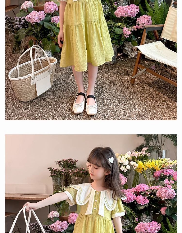 여아 드레스 여름 드레스 2025 새로운 스타일 아동 한국어 버전 인터넷 연예인 여름 반팔 공주 드레스 중대형 어린이를위한스토어 가기