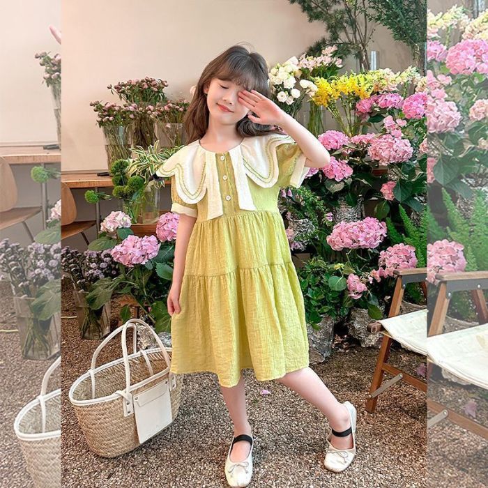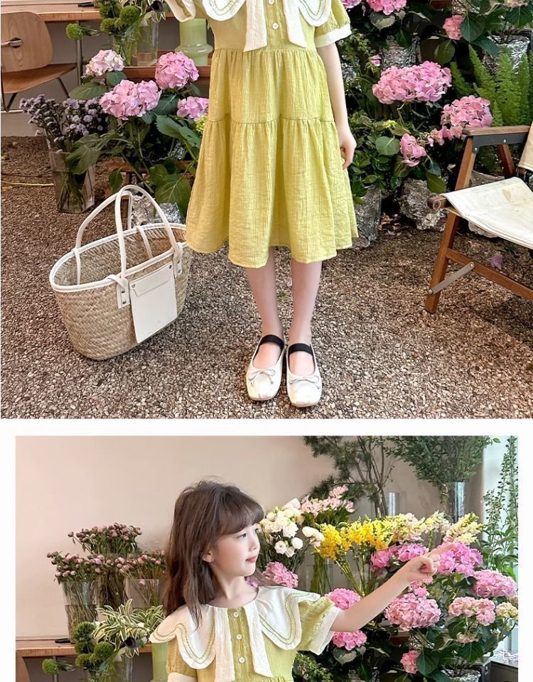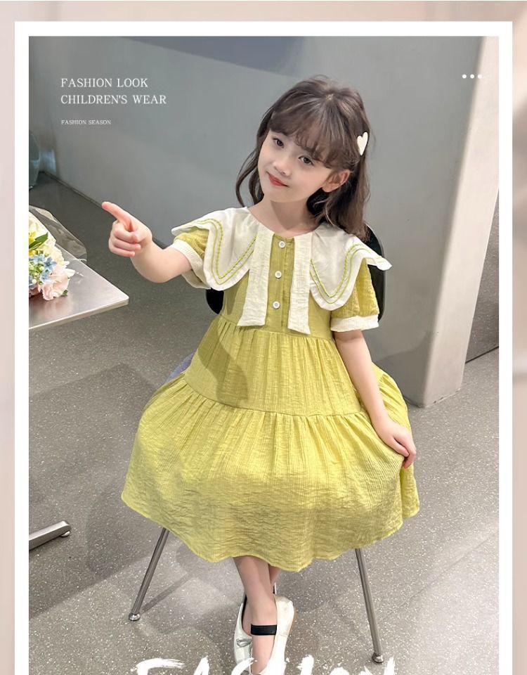 여아 드레스 여름 드레스 2025 새로운 스타일 아동 한국어 버전 인터넷 연예인 여름 반팔 공주 드레스 중대형 어린이를위한