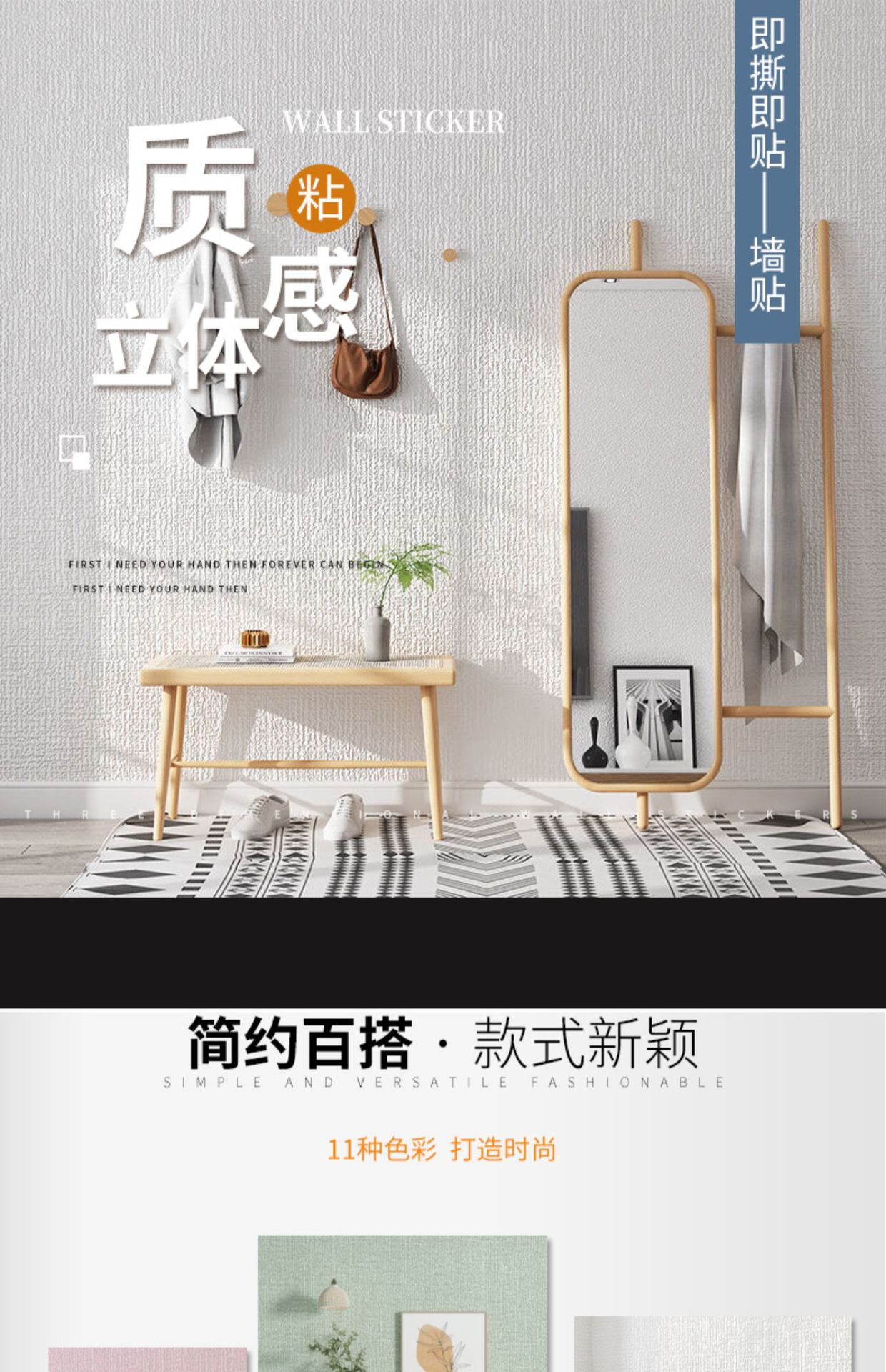 회색 벽지 자체 접착 3D 입체 벽 스티커는 침실과 거실을 덮습니다. 방수 및 방습 따뜻한 가정용 자체 접착 벽지스토어 가기
