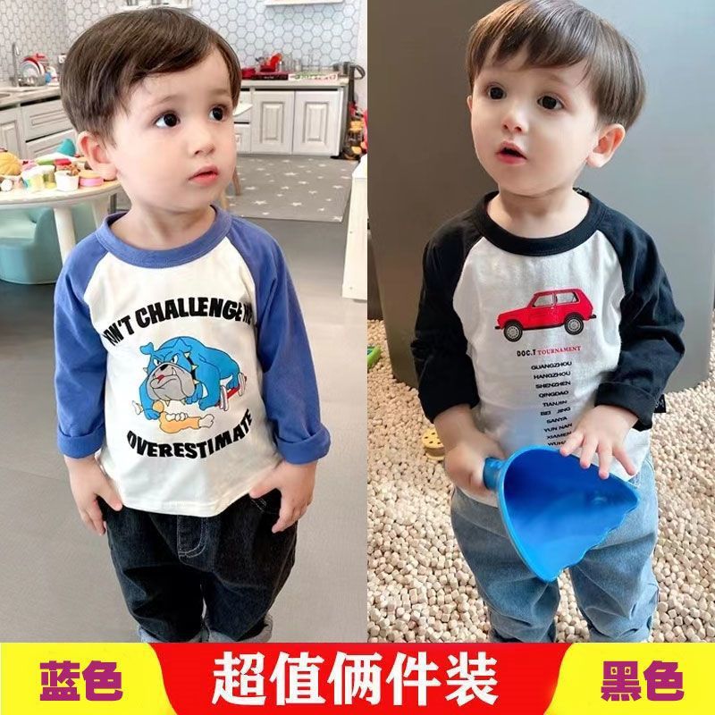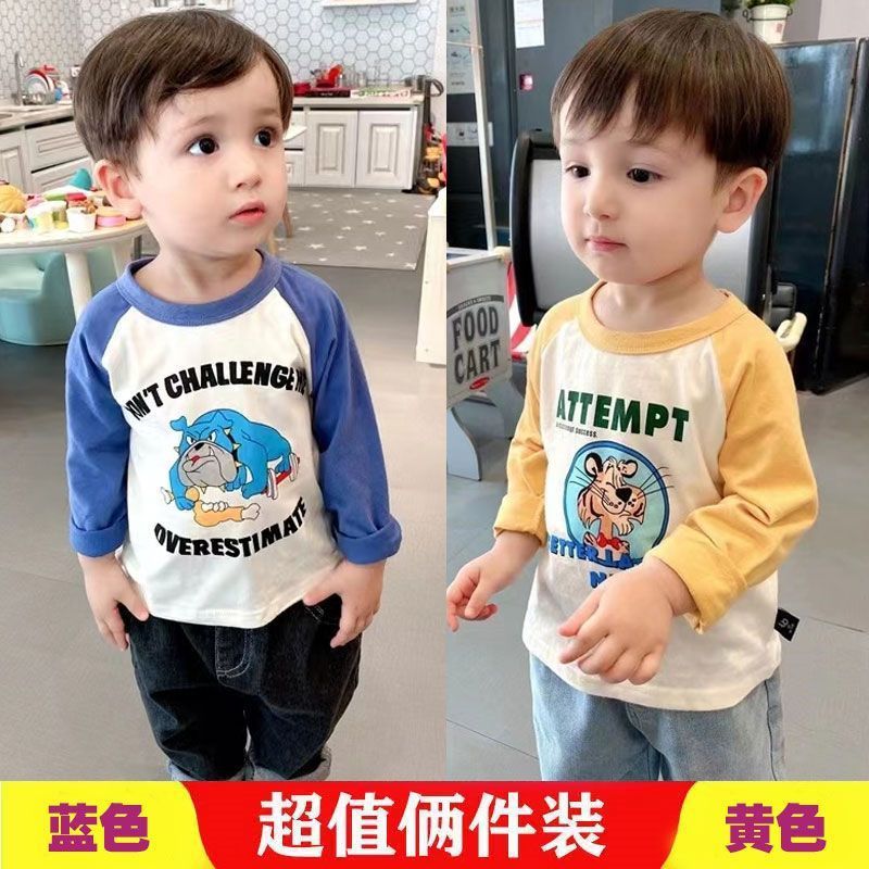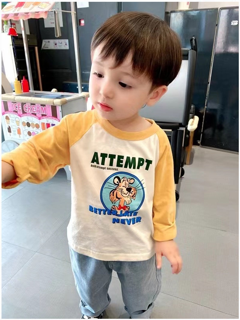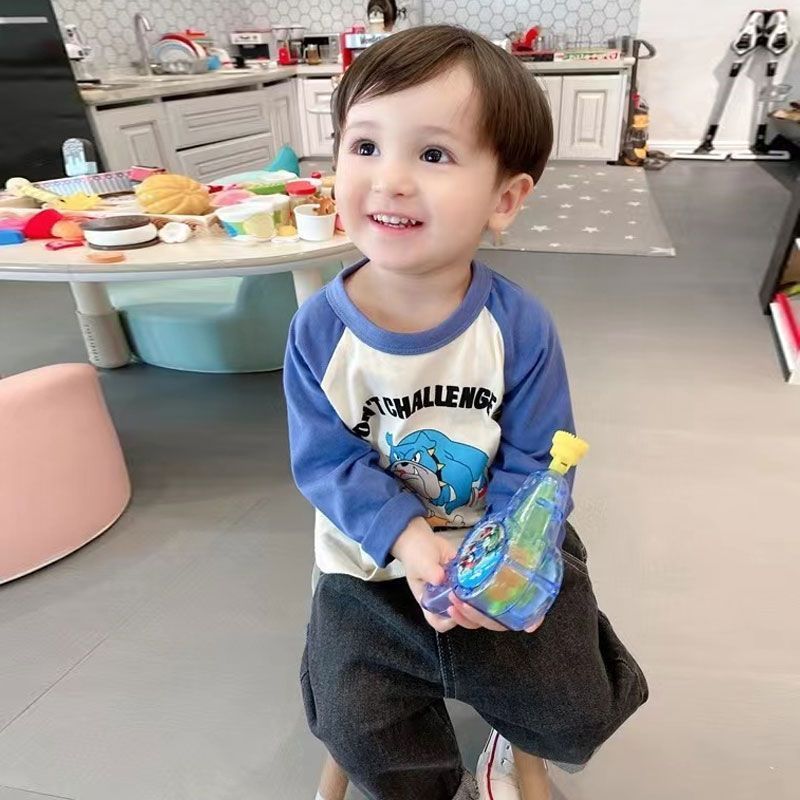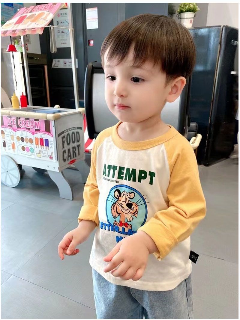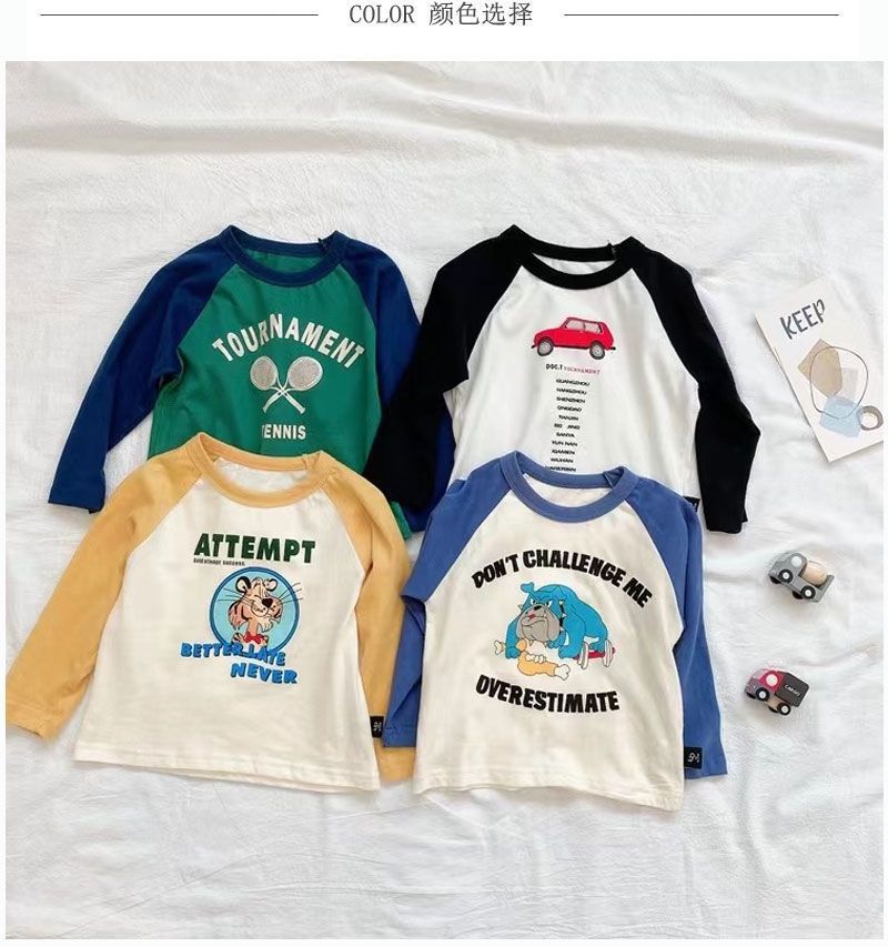 코튼 어린이 긴팔 티셔츠 2025 봄과 가을 중소형 아동복 새로운 만화 애니메이션베이스 셔츠 소년 소녀 T스토어 가기