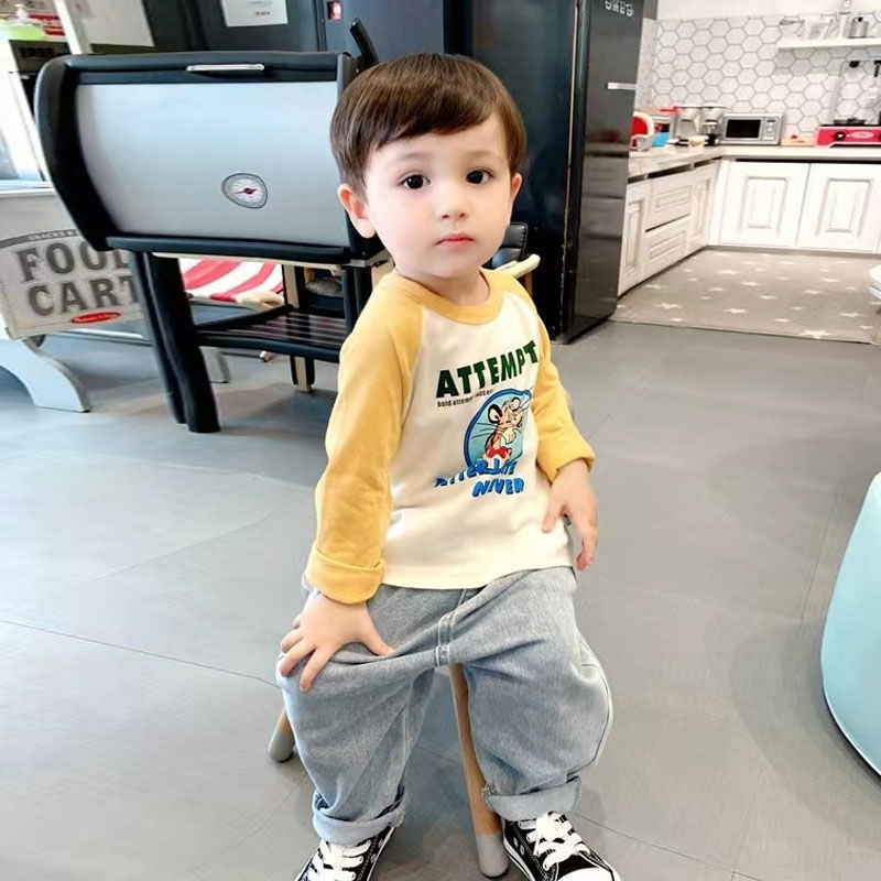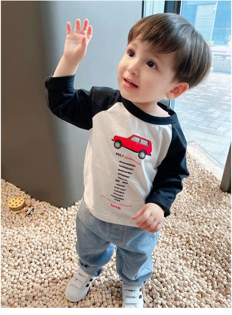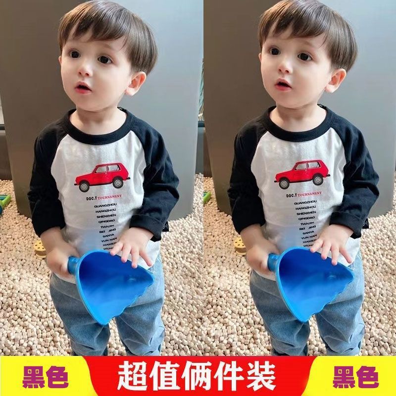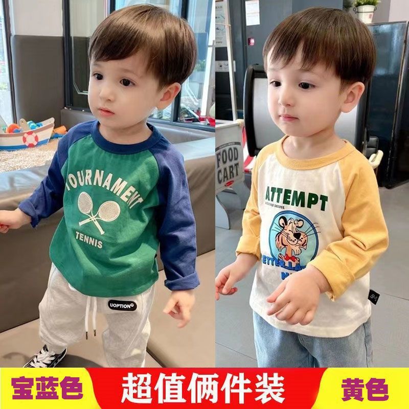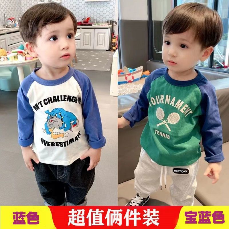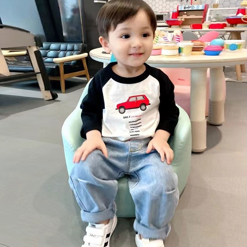 코튼 어린이 긴팔 티셔츠 2025 봄과 가을 중소형 아동복 새로운 만화 애니메이션베이스 셔츠 소년 소녀 T스토어 가기