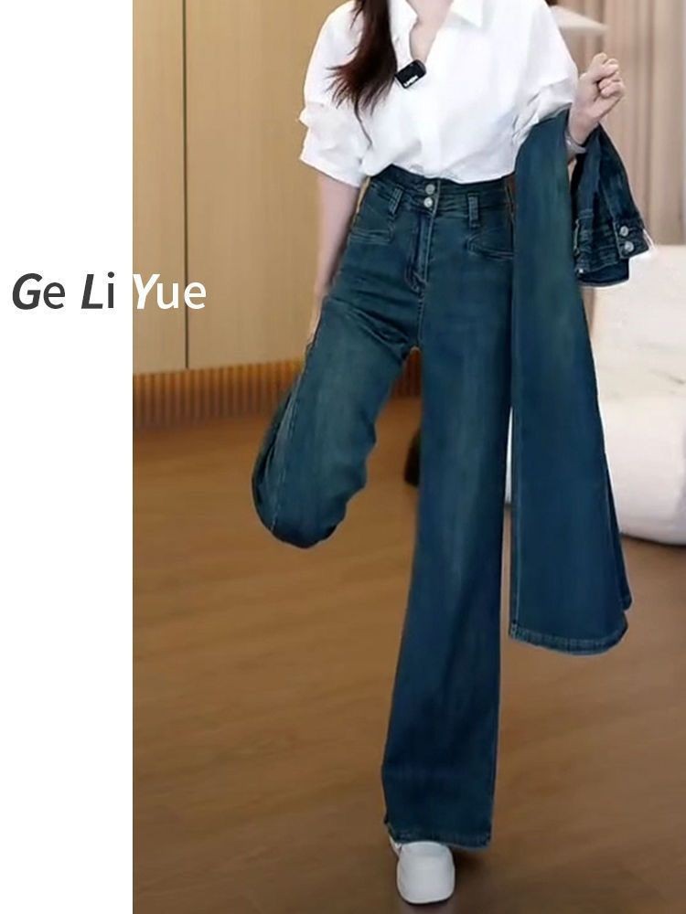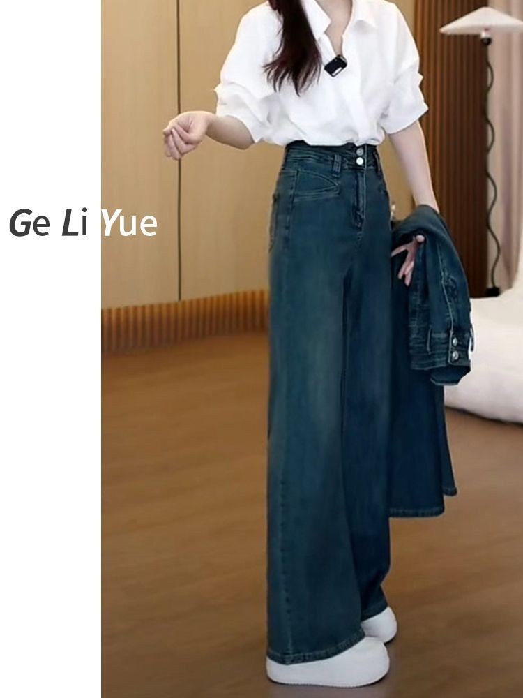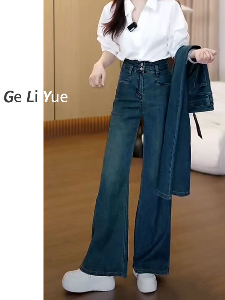 2025년 신상 여성용 하이웨이스트 청바지, 루즈하고 슬림한 복고풍 와이드 팬츠, A버전, 다리에 꼭 맞는 바지스토어 가기