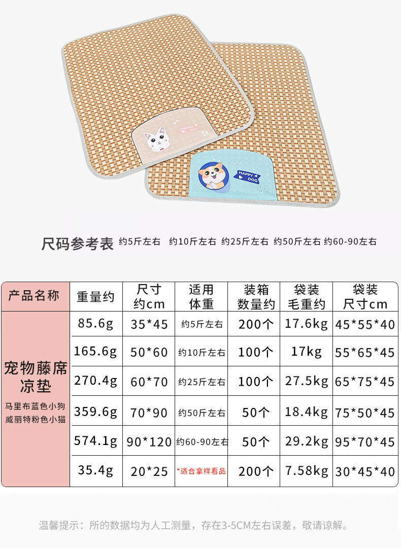 애완 동물 매트 여름 개 매트 여름 개 개집 얼음 매트 잠자는 새끼 고양이 수면용 매트 냉각 등나무 개 매트