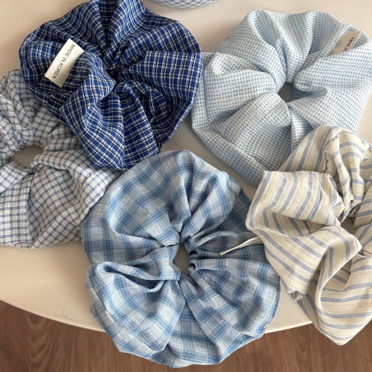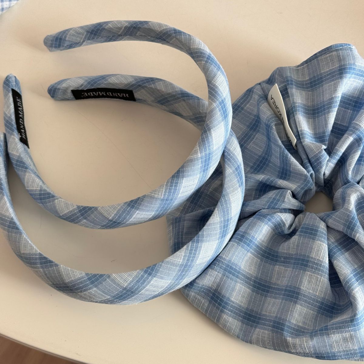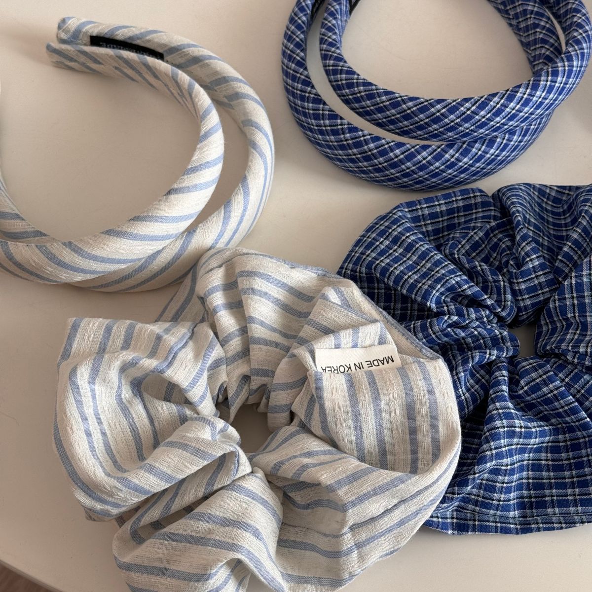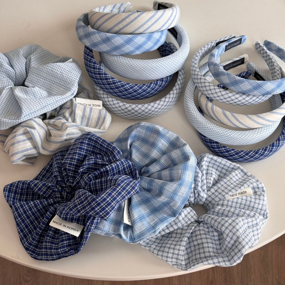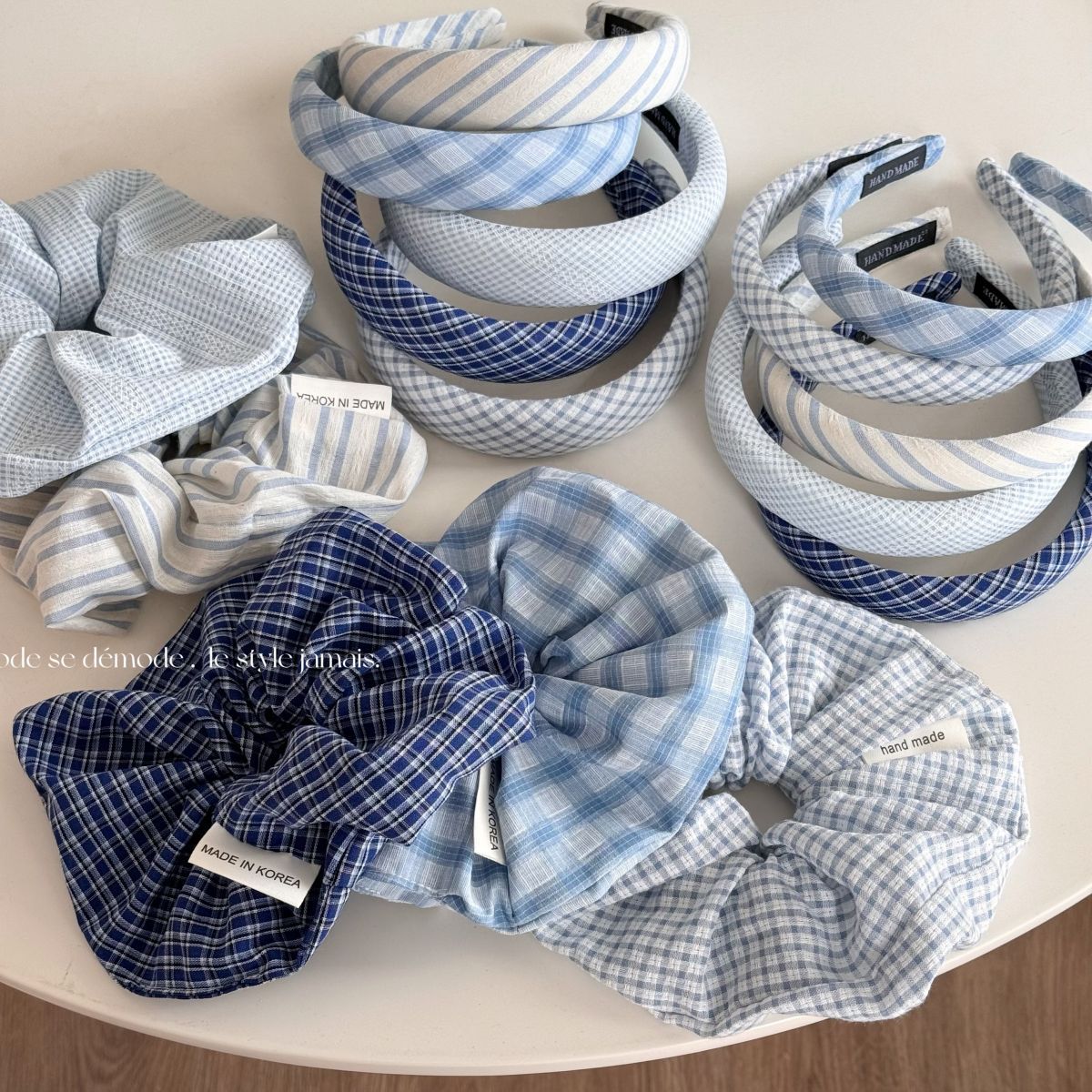 • 블루 프레시 와이드 후프 - 다크 블루 체크