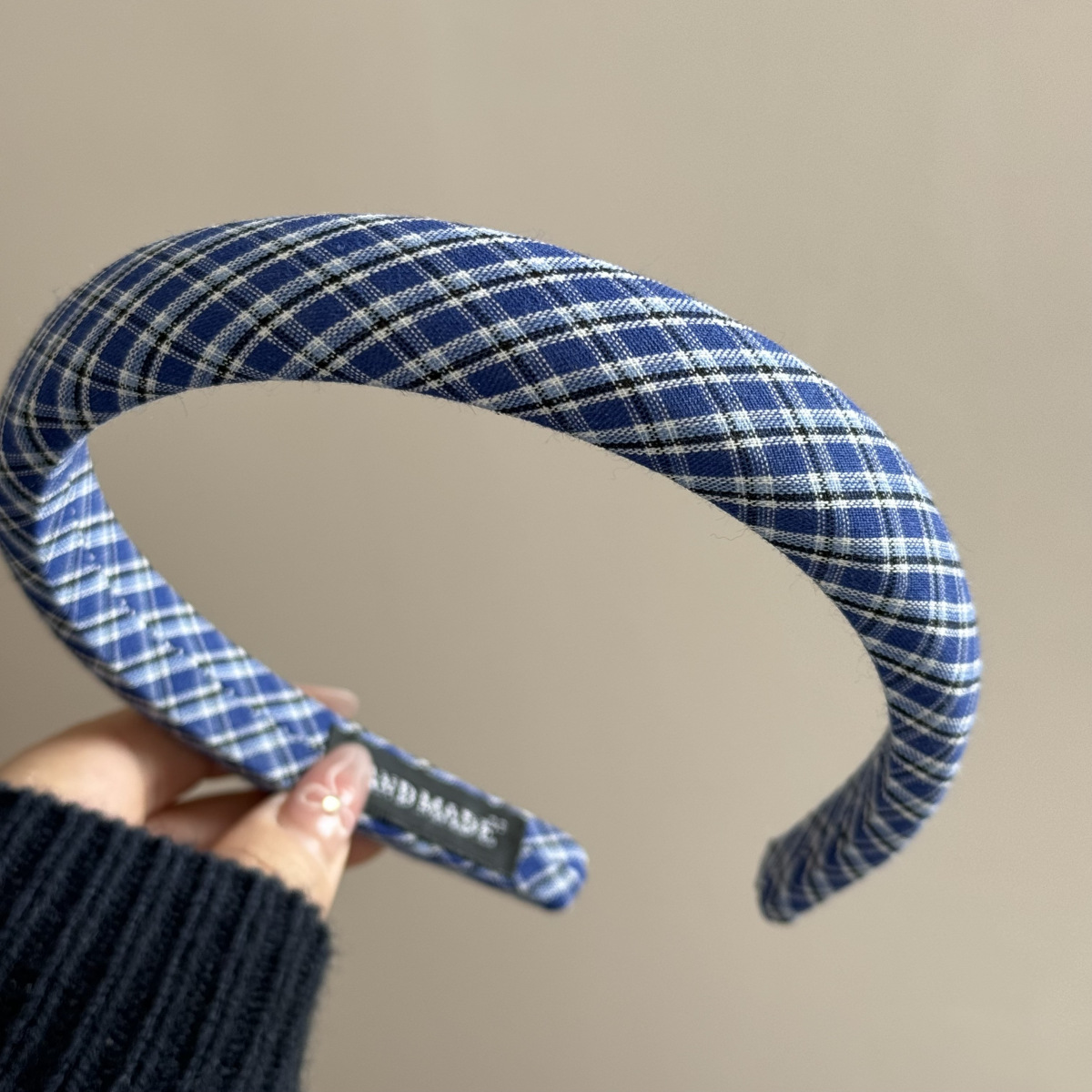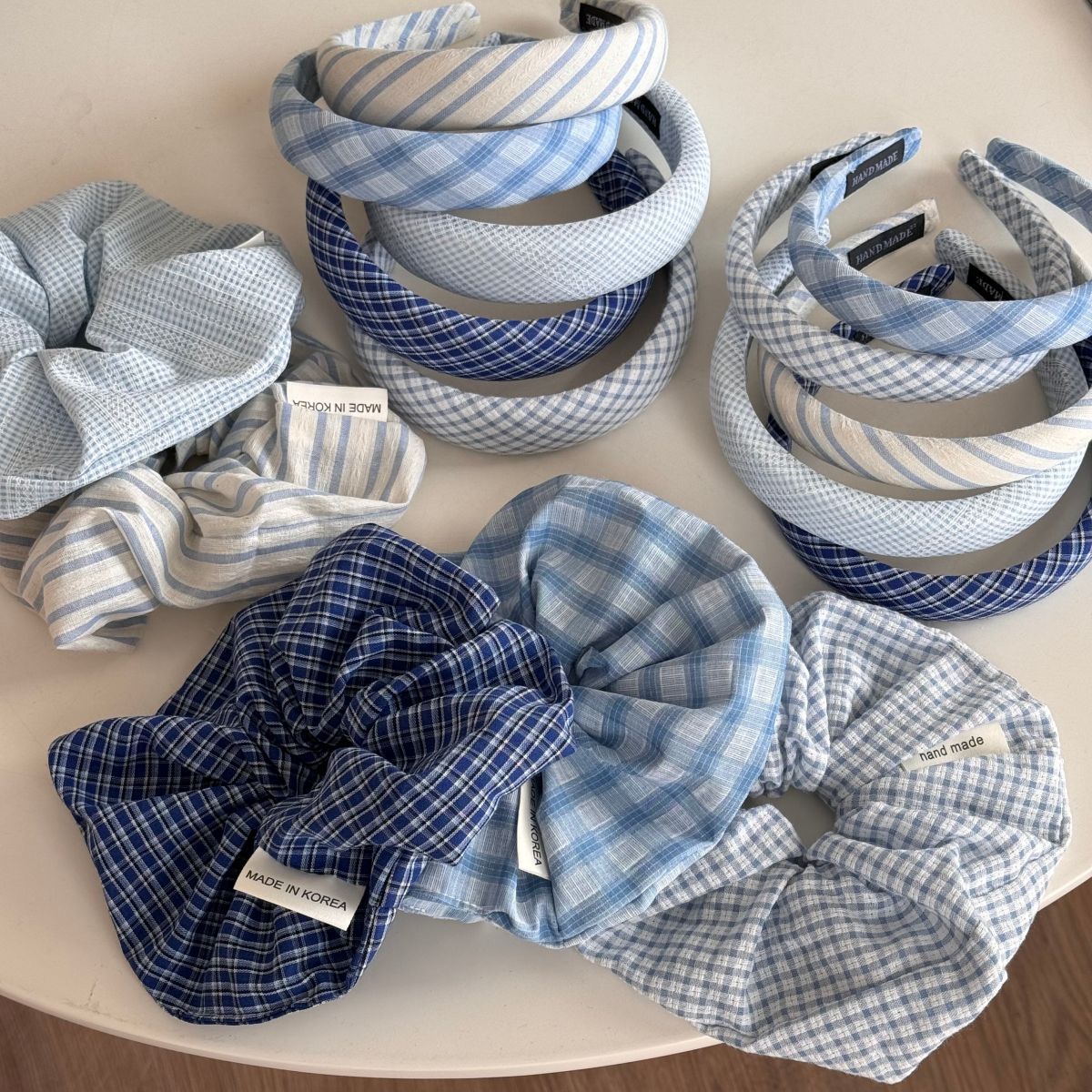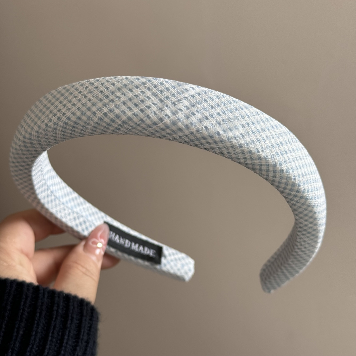 블루 스타일 신선하고 귀여운 체크 무늬 헤어 후프 여성의 고급 헤어 후프 스폰지 높은 크랜얼 탑 헤어 클립 새로운 헤어 액세서리스토어 가기
