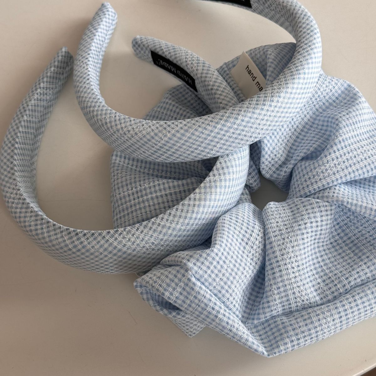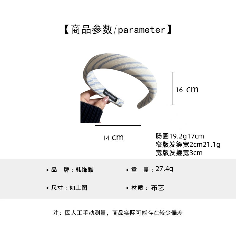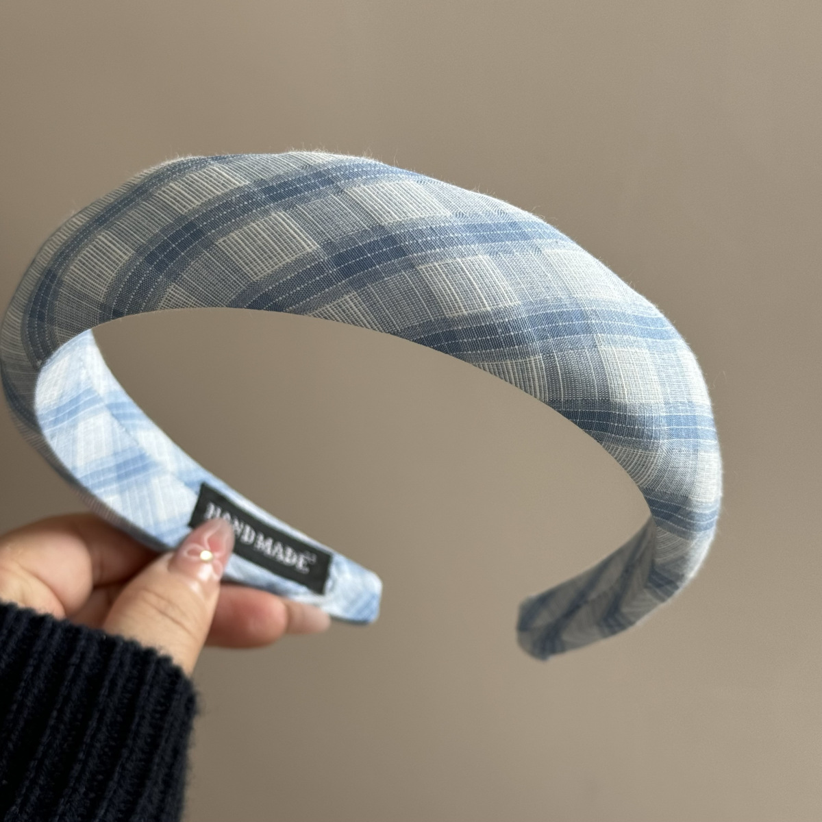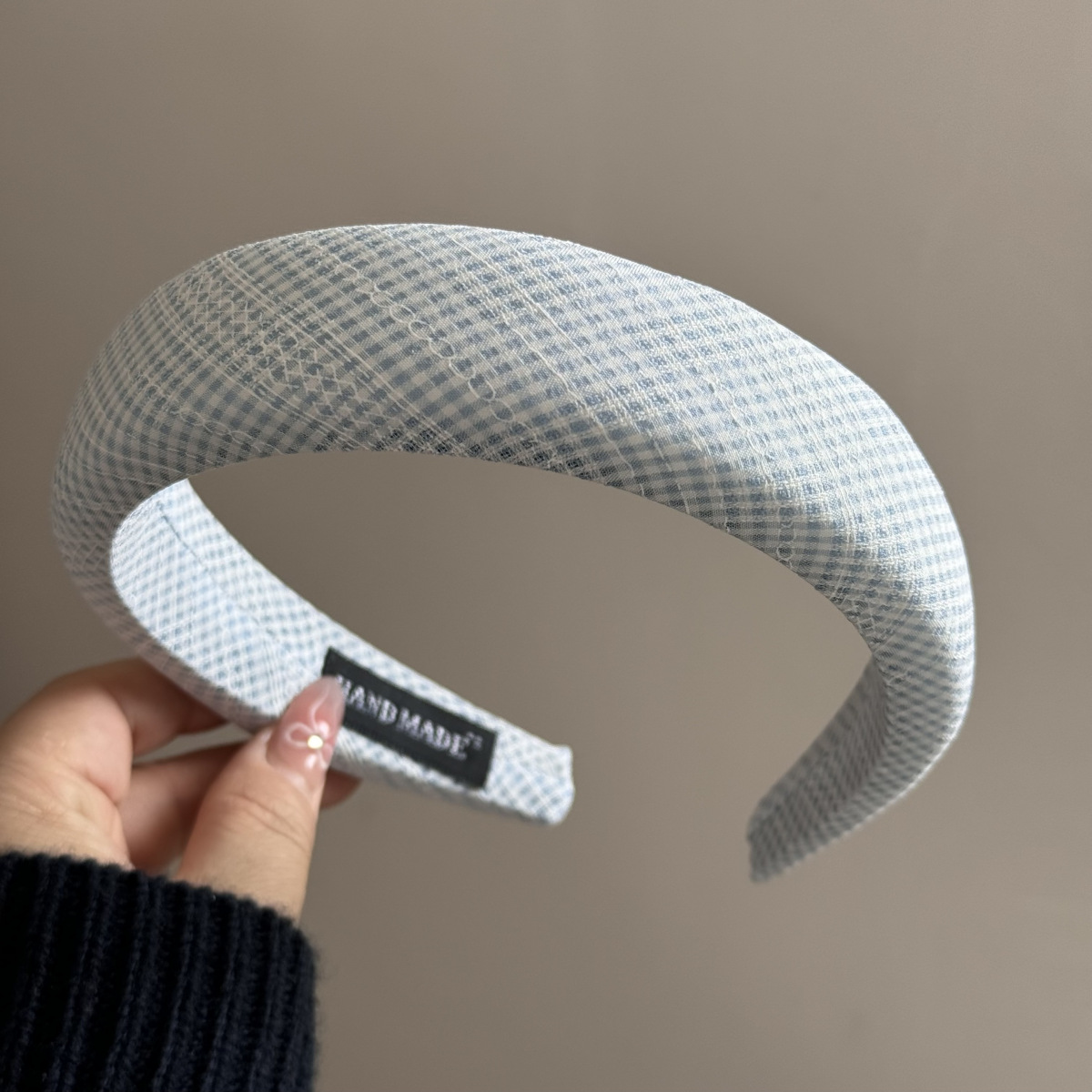 블루 스타일 신선하고 귀여운 체크 무늬 헤어 후프 여성의 고급 헤어 후프 스폰지 높은 크랜얼 탑 헤어 클립 새로운 헤어 액세서리스토어 가기