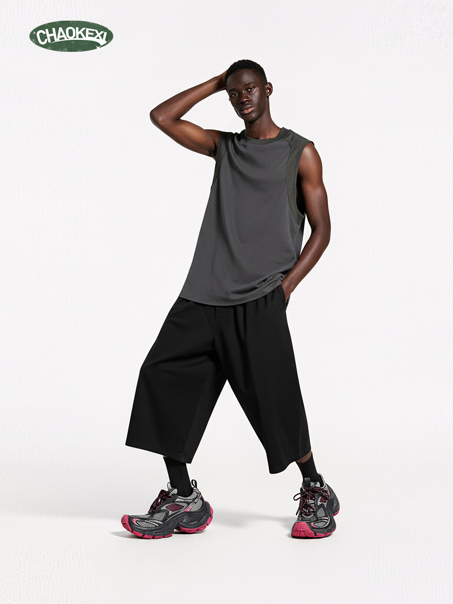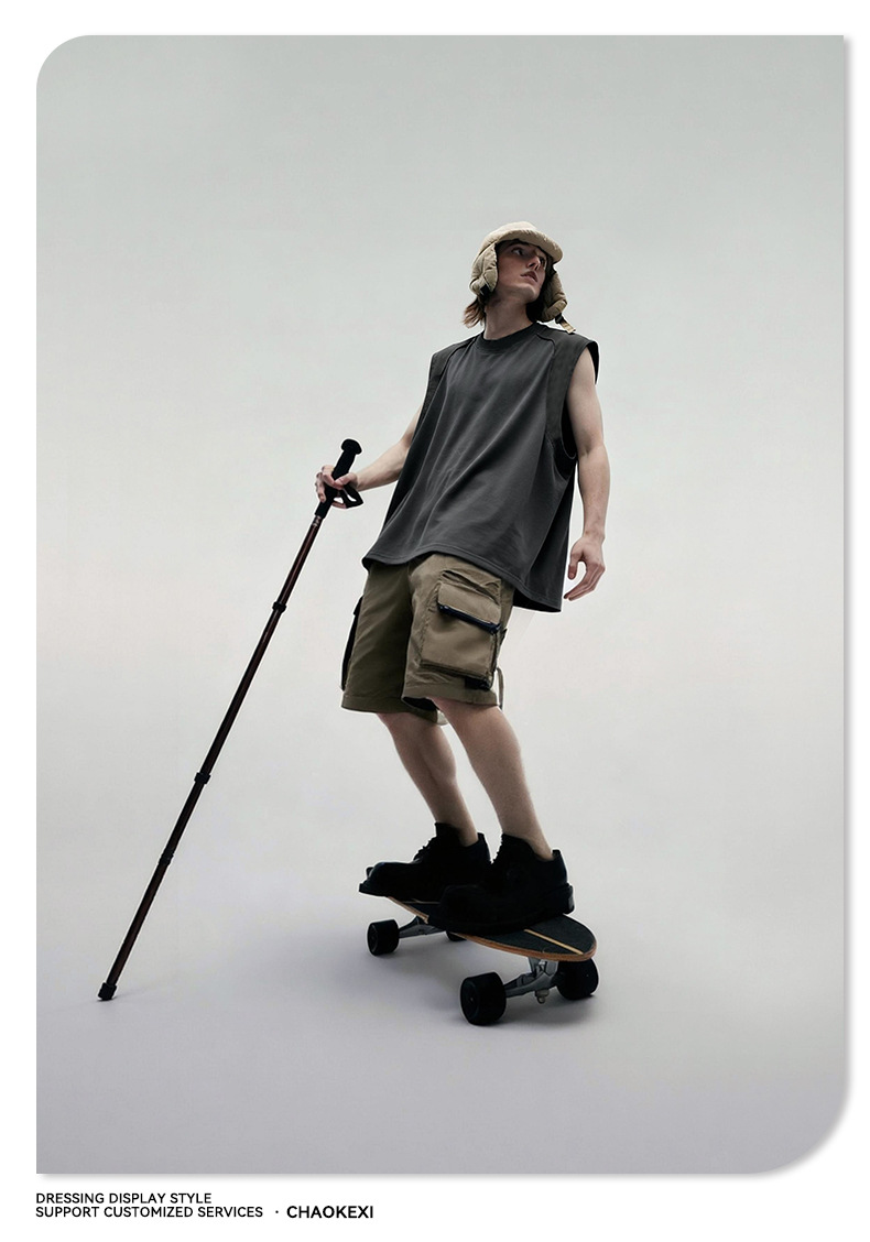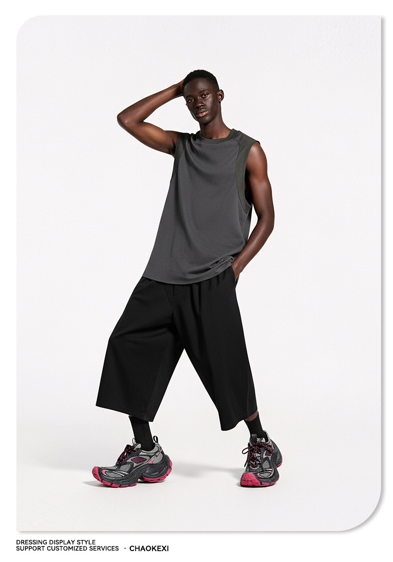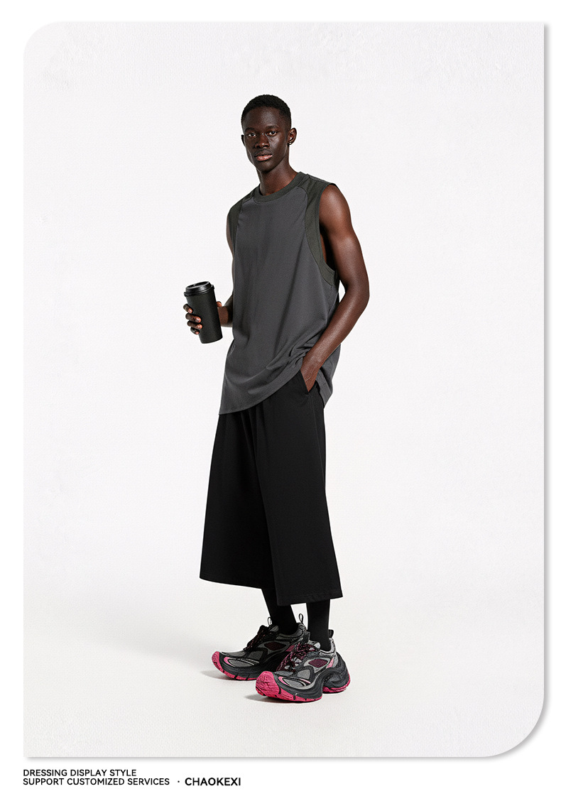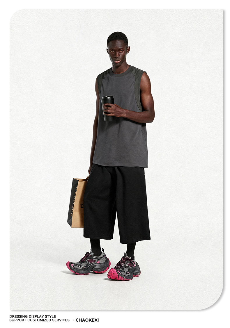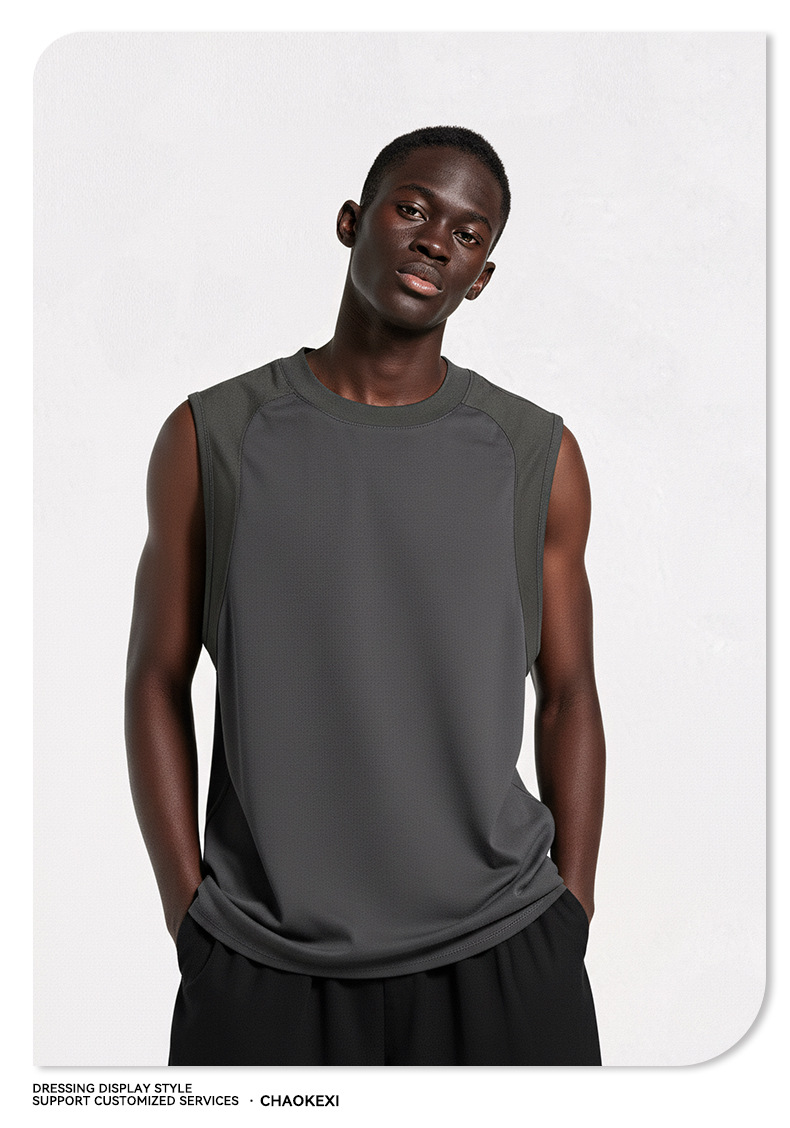 여름 신상품 시원한 속건성 캐주얼 농구 스타일 조끼 남성용 통기성 좋은 루즈핏 민소매 조끼 티셔츠스토어 가기
