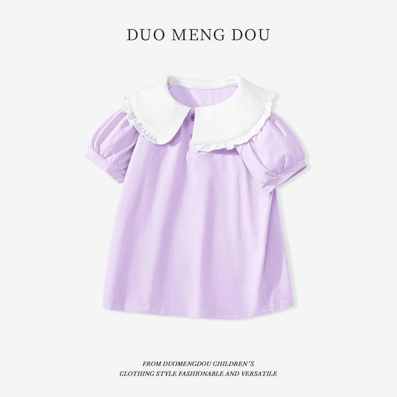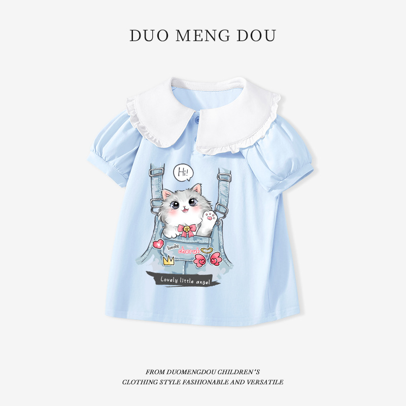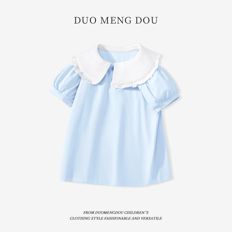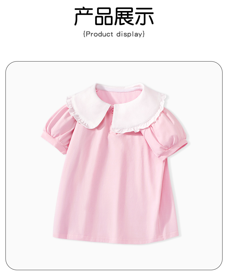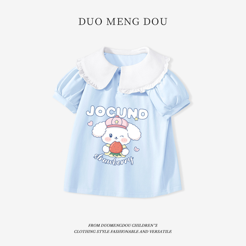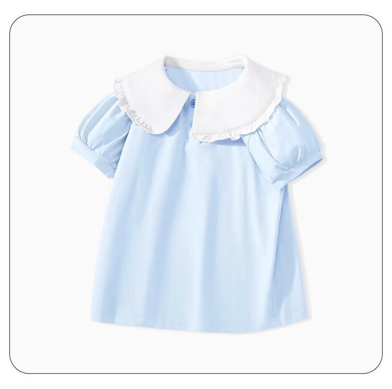 여자 버블 반소매 티셔츠 어린이 레지 칼라 반소매 아동복 걸스 빅보이 웨스턴 스타일 톱 2025 여름 뉴스토어 가기