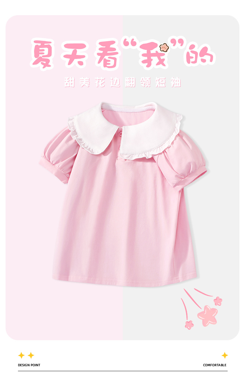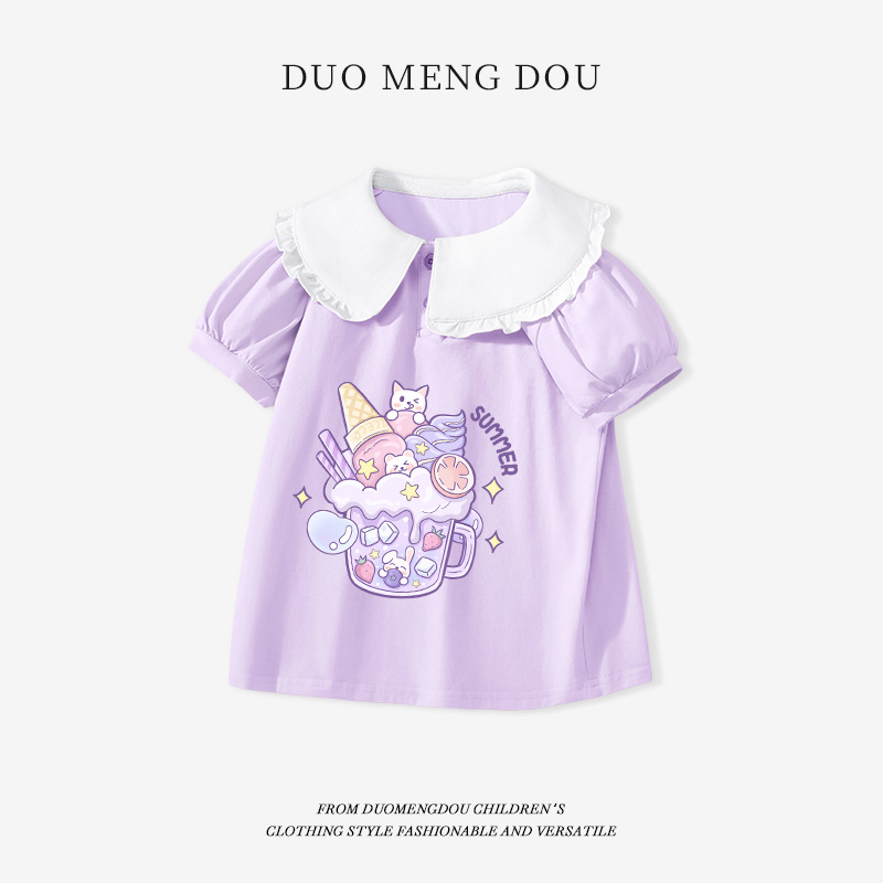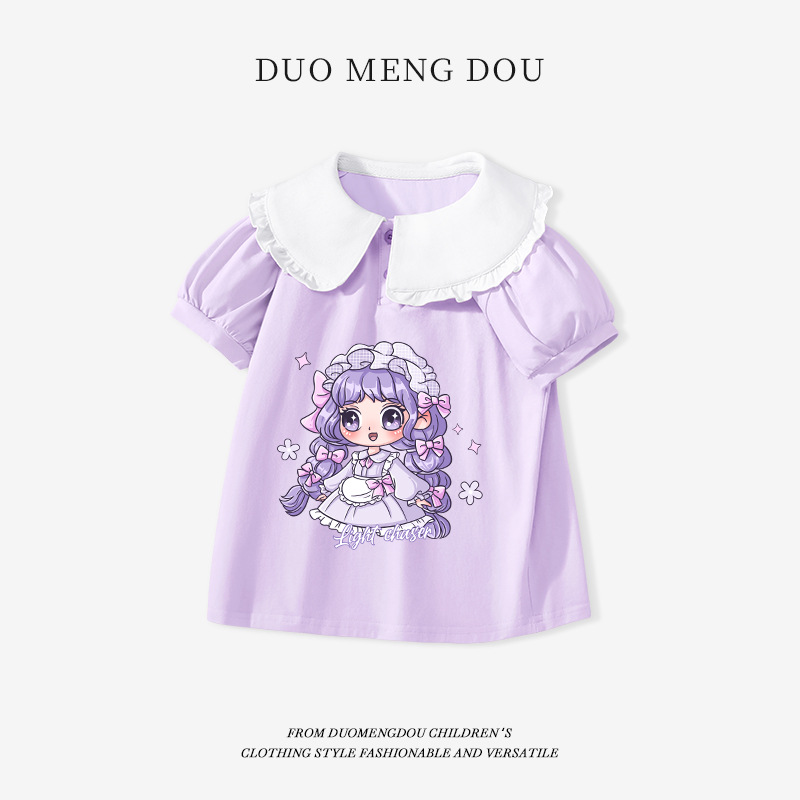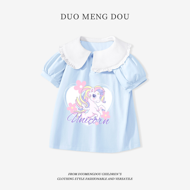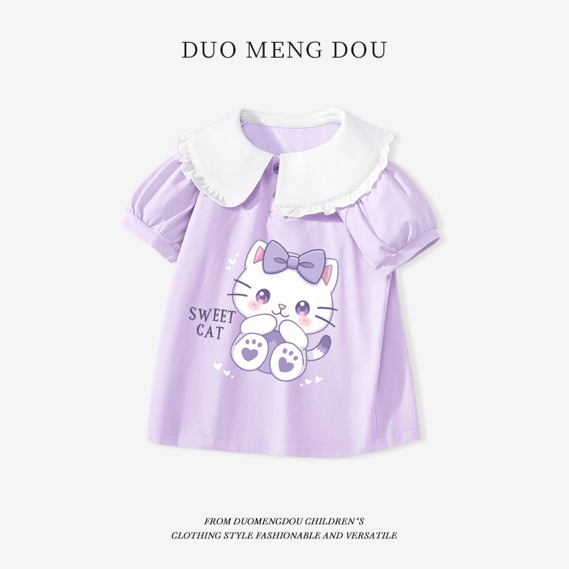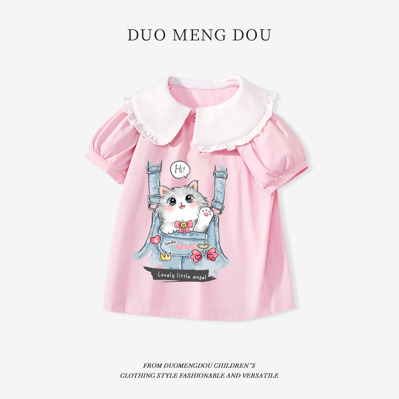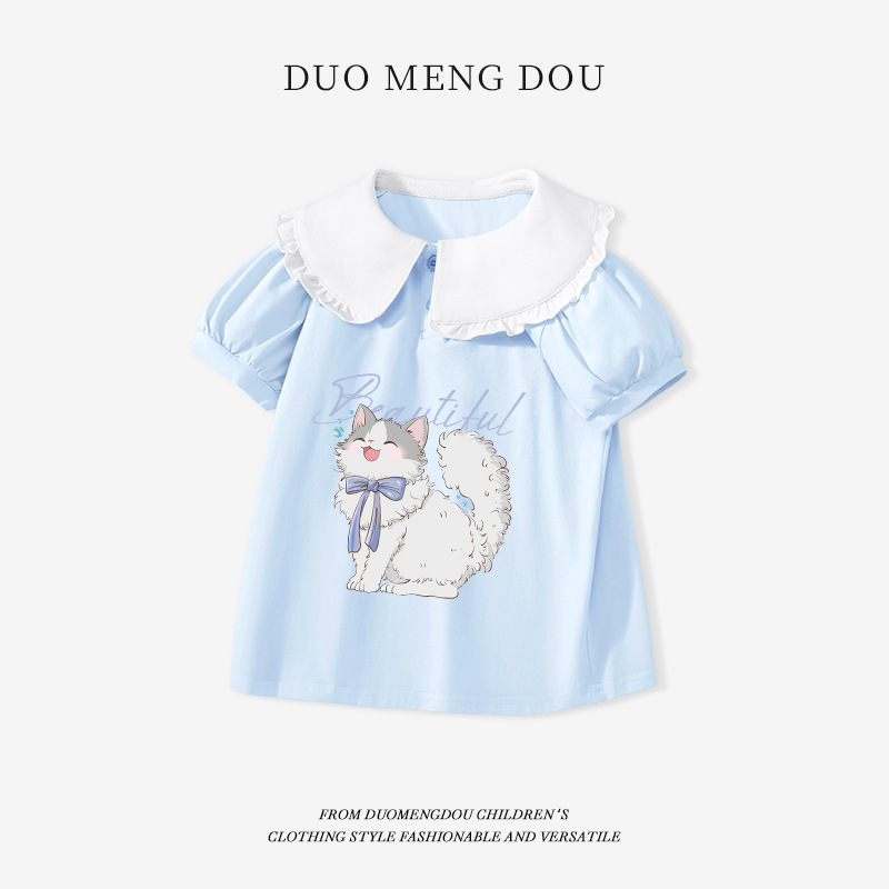 여자 버블 반소매 티셔츠 어린이 레지 칼라 반소매 아동복 걸스 빅보이 웨스턴 스타일 톱 2025 여름 뉴스토어 가기