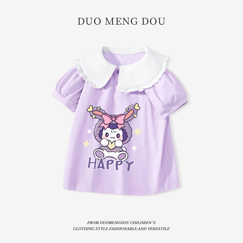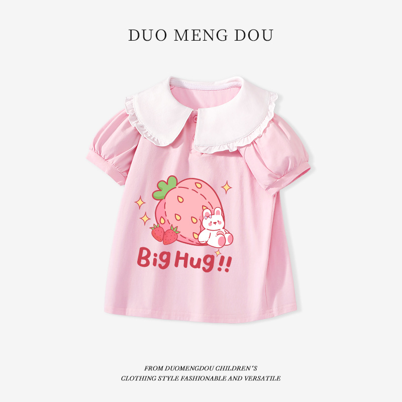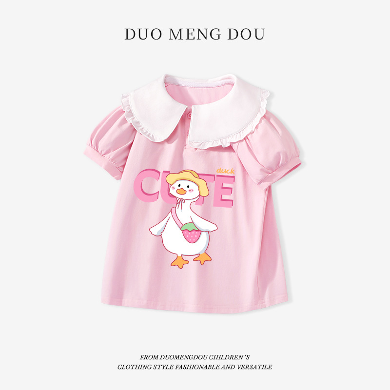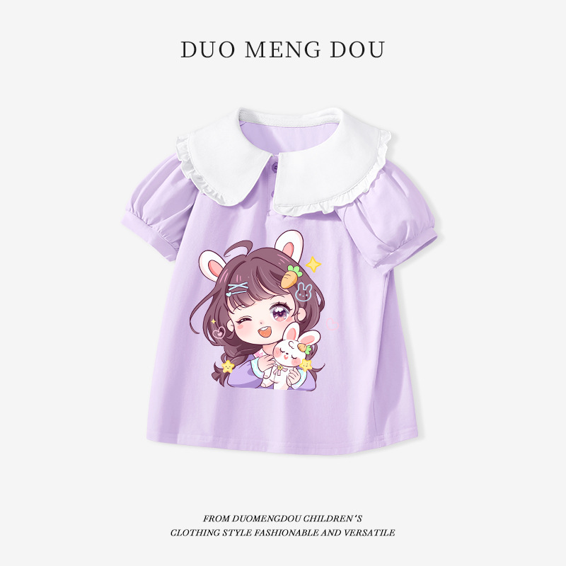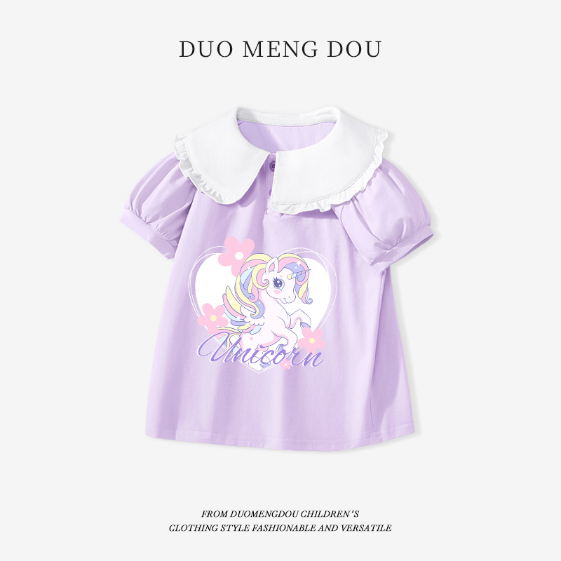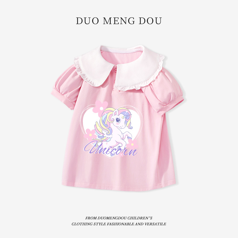 여자 버블 반소매 티셔츠 어린이 레지 칼라 반소매 아동복 걸스 빅보이 웨스턴 스타일 톱 2025 여름 뉴스토어 가기