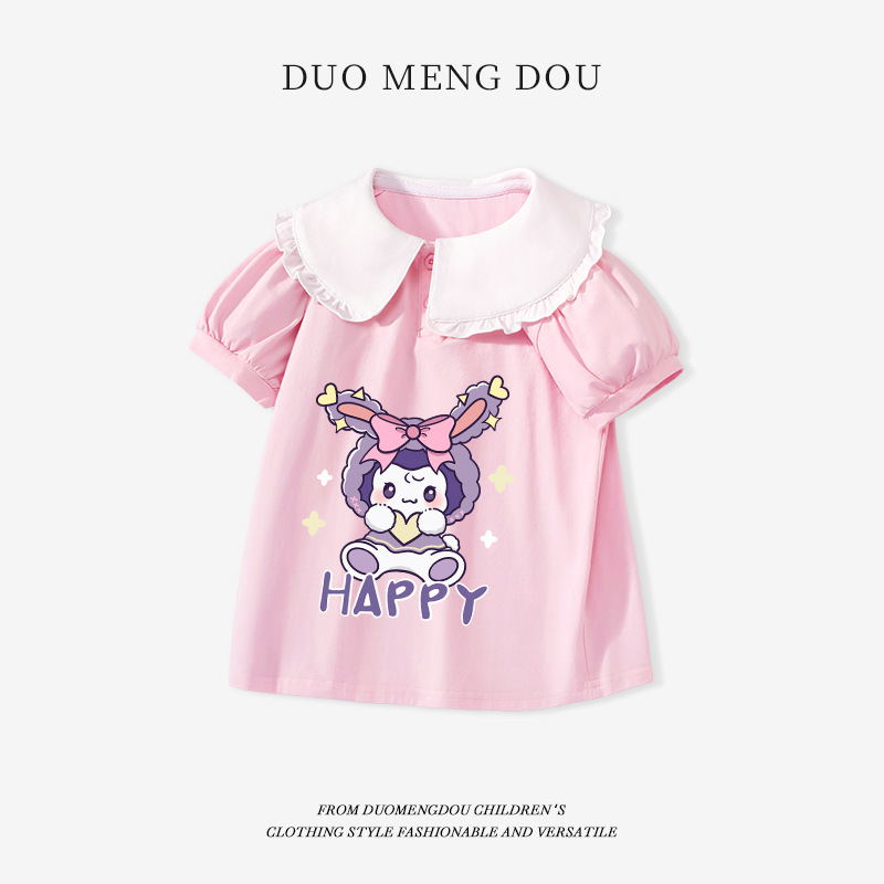 여자 버블 반소매 티셔츠 어린이 레지 칼라 반소매 아동복 걸스 빅보이 웨스턴 스타일 톱 2025 여름 뉴