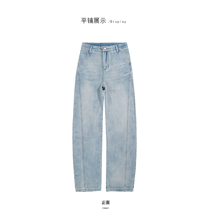 미국 라이트 블루 시미타 청바지 여성의 봄과 여름 2025 새로운 높은 허리 느슨한 디자인 감각 게으른 스타일 넓은 다리 바지스토어 가기