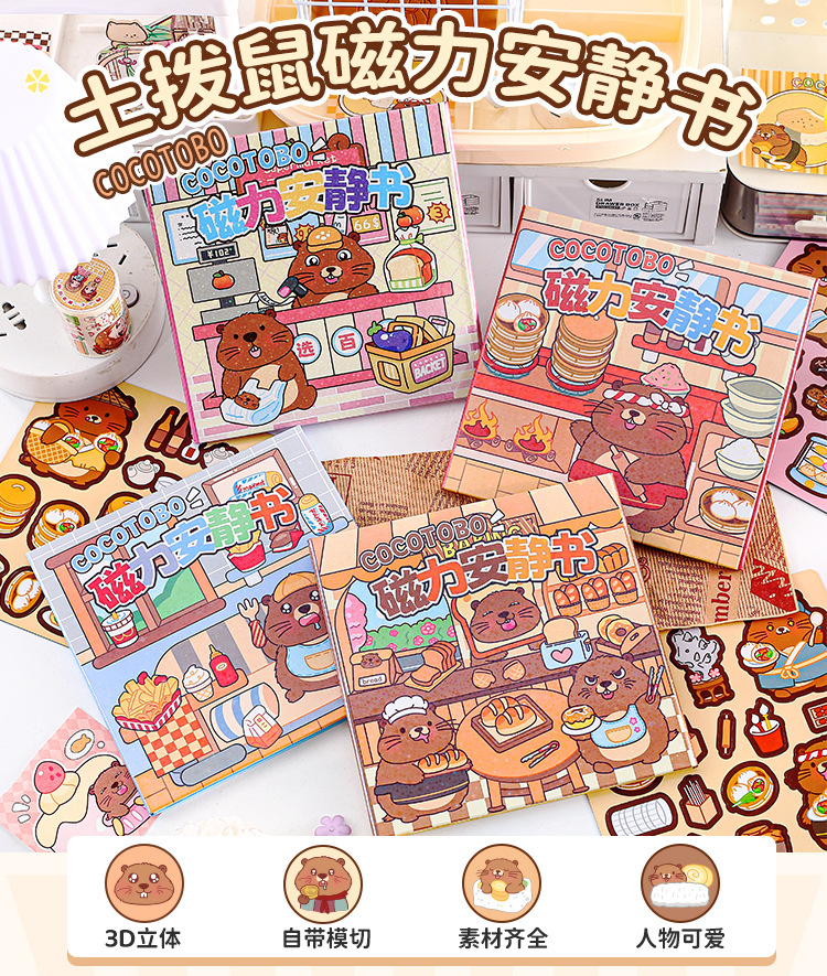 어린이와 초등학생을위한 Groundhog Magnetic Quiet Book 마그네틱 흡수 끈적 끈적한 끈적 끈적한 조용한 책 절단없는 창조적 인 수제스토어 가기
