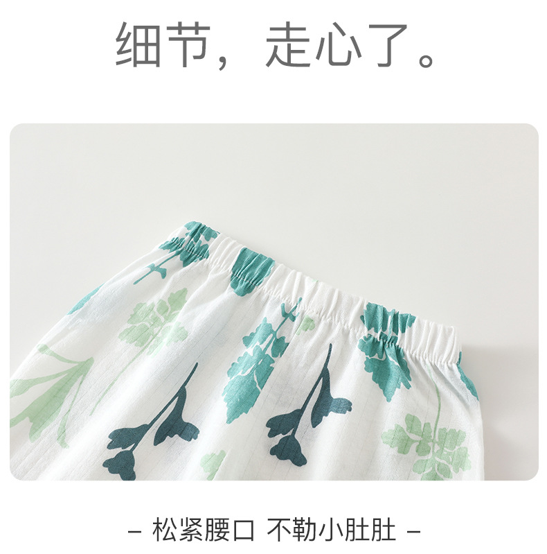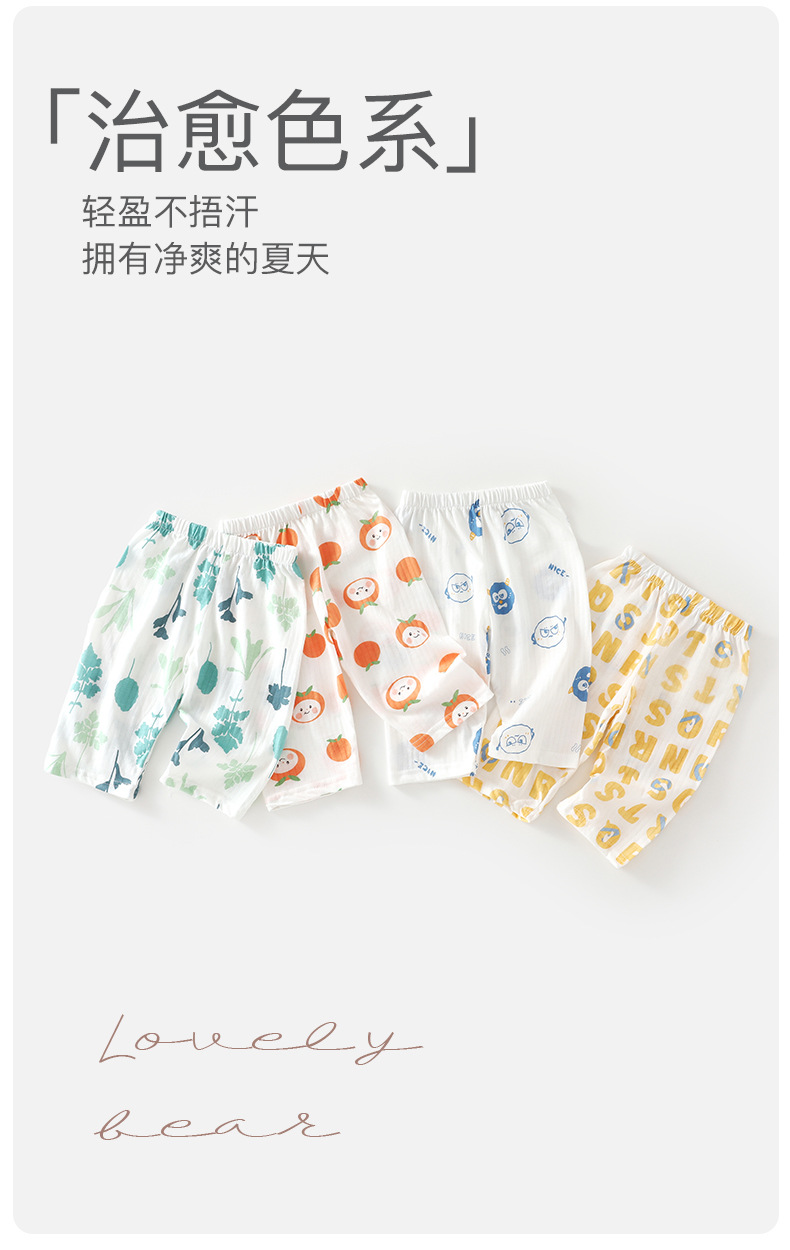아기의 여름 순수한면 얇은 카프리 바지 아기의 느슨한 홈 옷 소년과 소녀 귀여운 도시 밖 모기 방지 바지