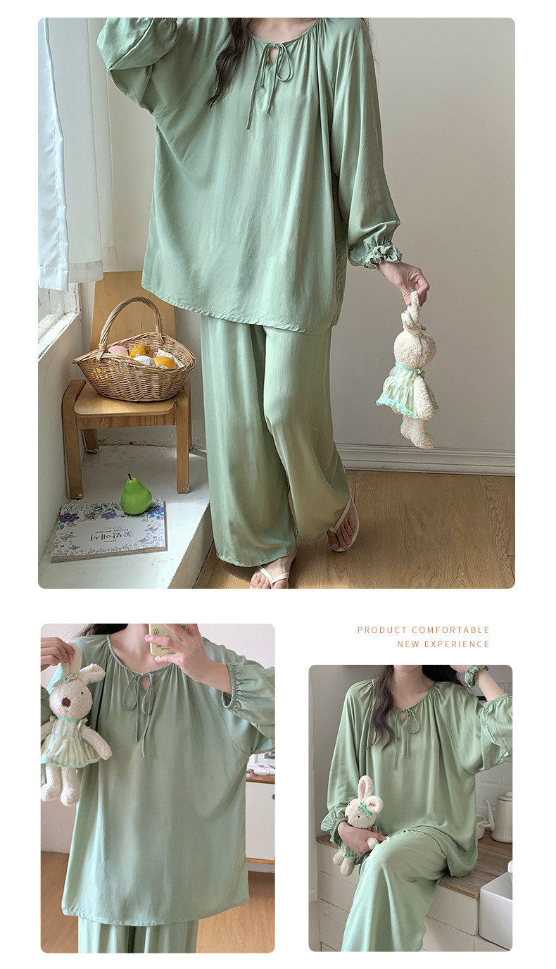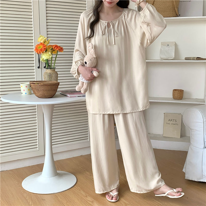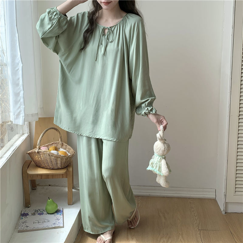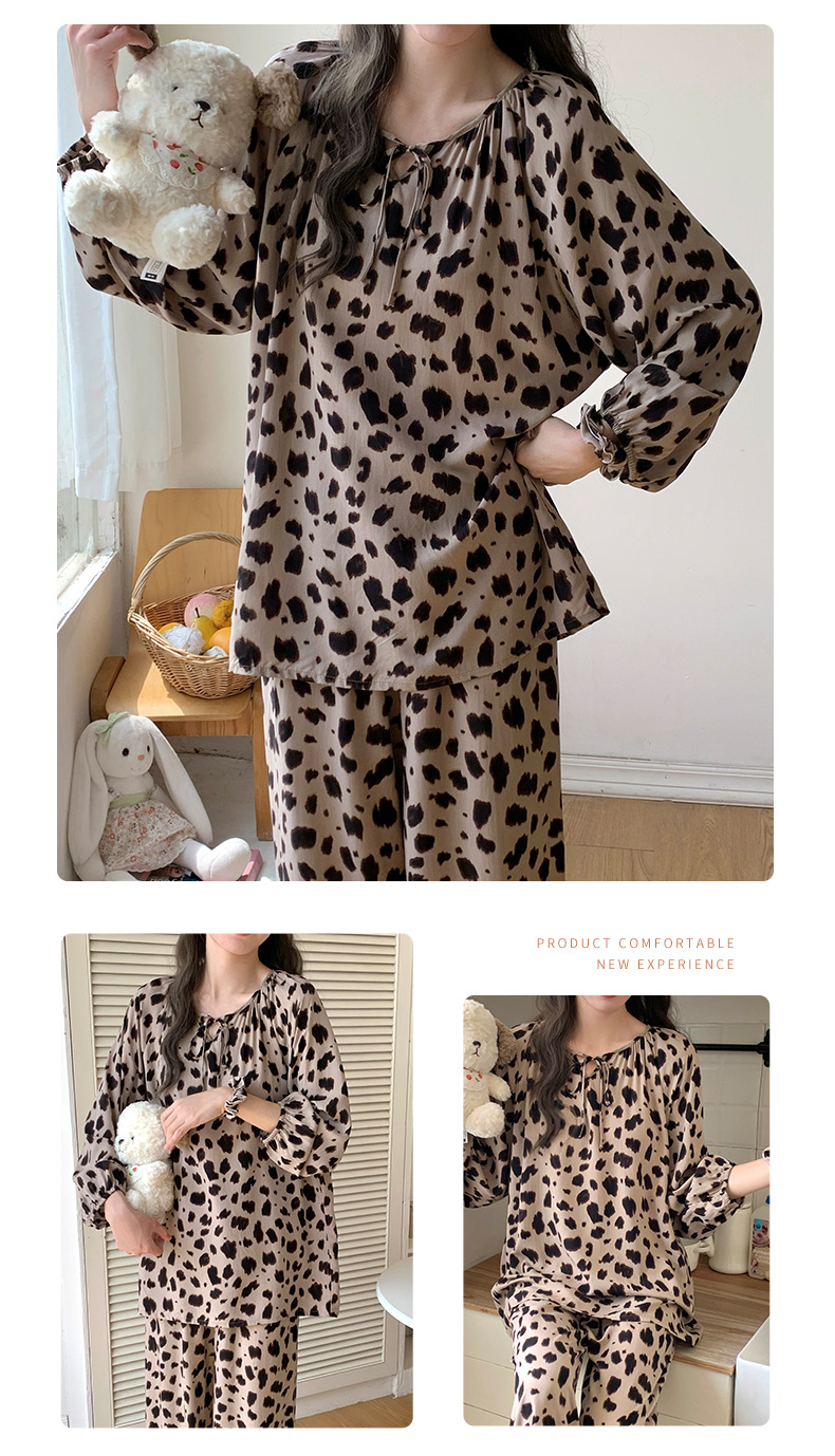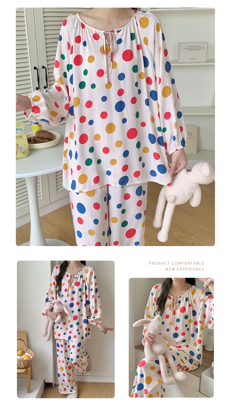 면 실크 잠옷 여성의 봄과 여름 새로운 플러스 사이즈 긴 소매 인쇄 세트 인터넷 축하 라이브 스타일 레이온 홈 옷 가을