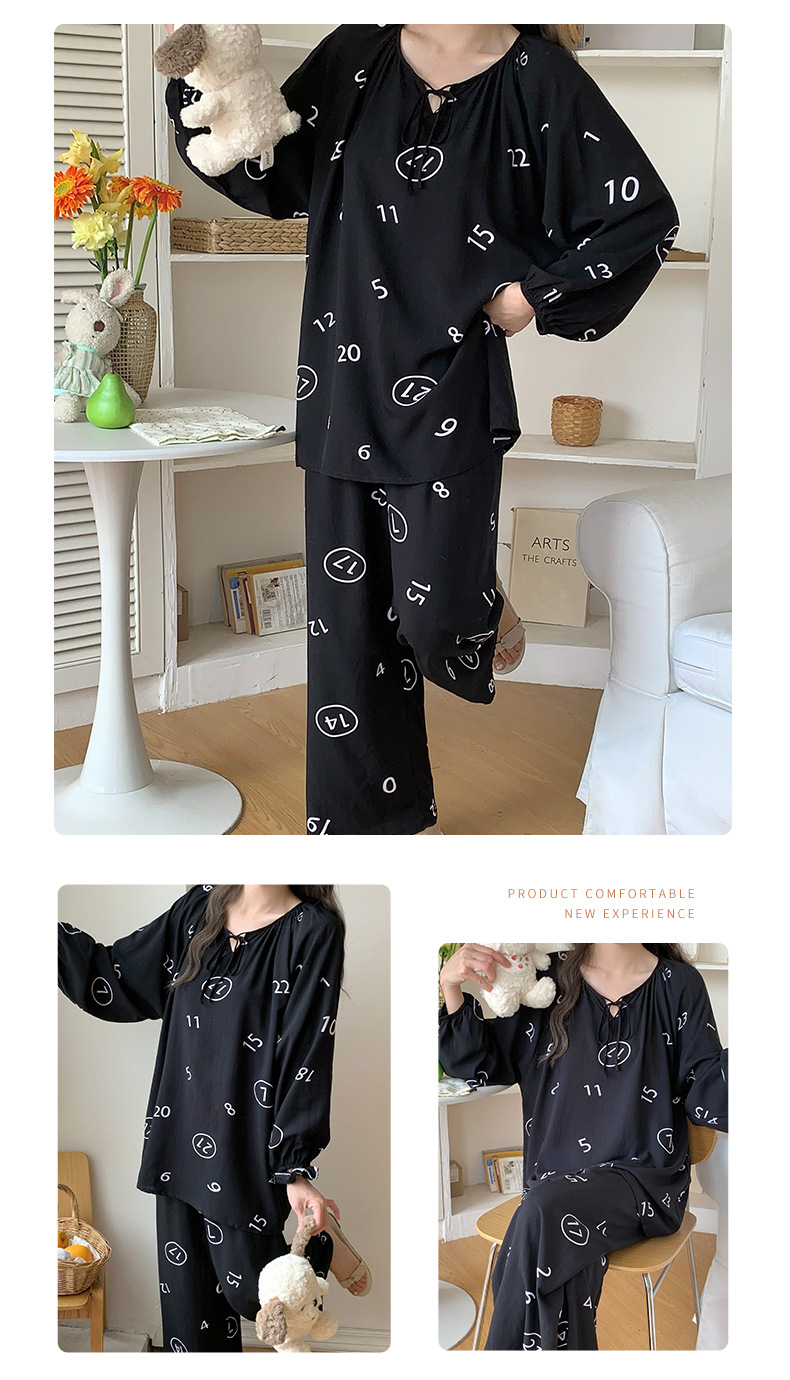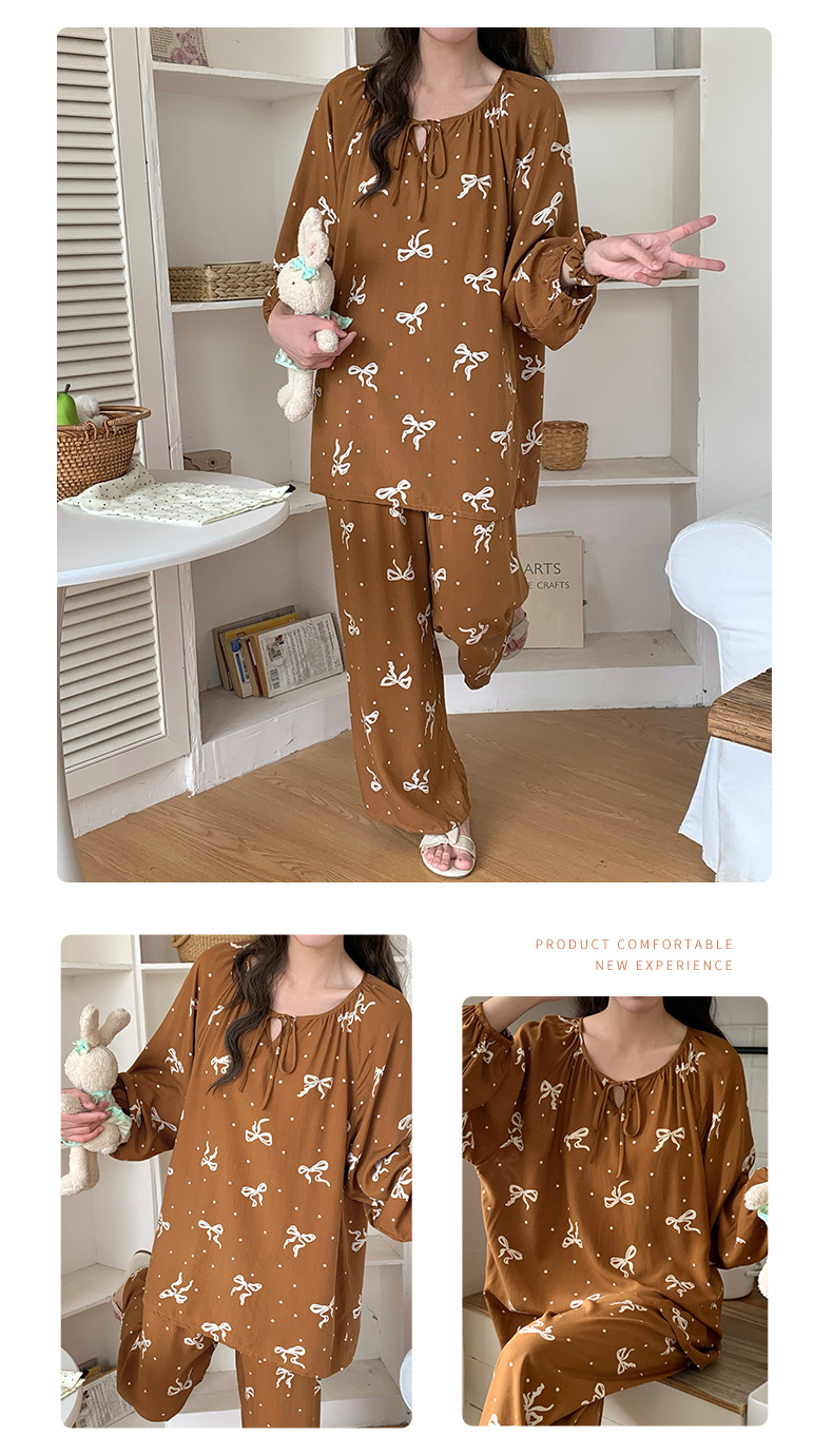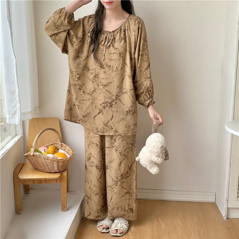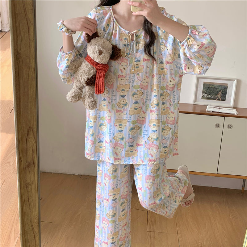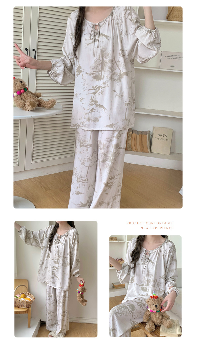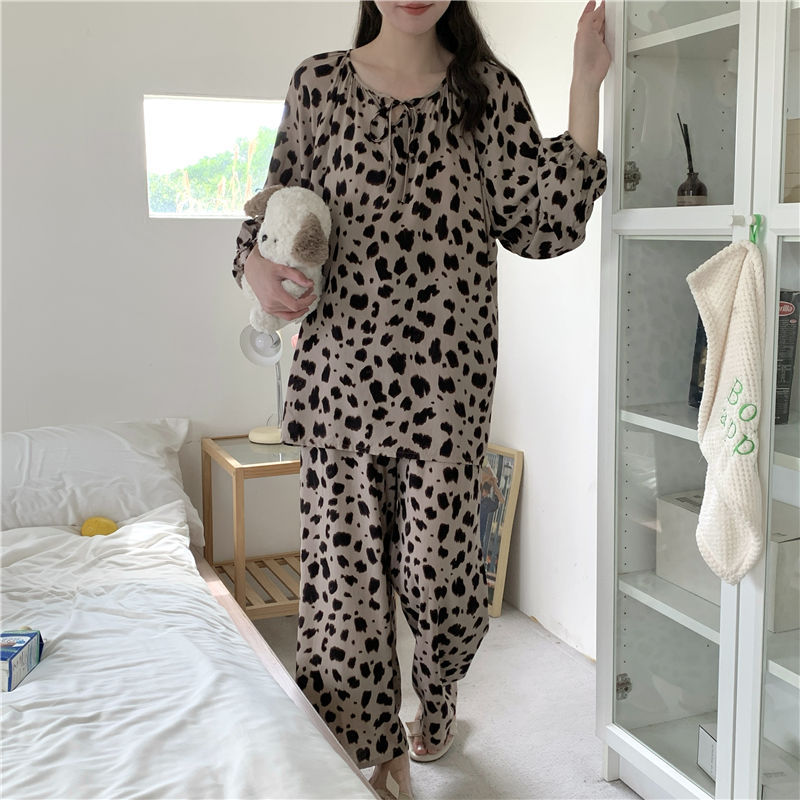 면 실크 잠옷 여성의 봄과 여름 새로운 플러스 사이즈 긴 소매 인쇄 세트 인터넷 축하 라이브 스타일 레이온 홈 옷 가을스토어 가기