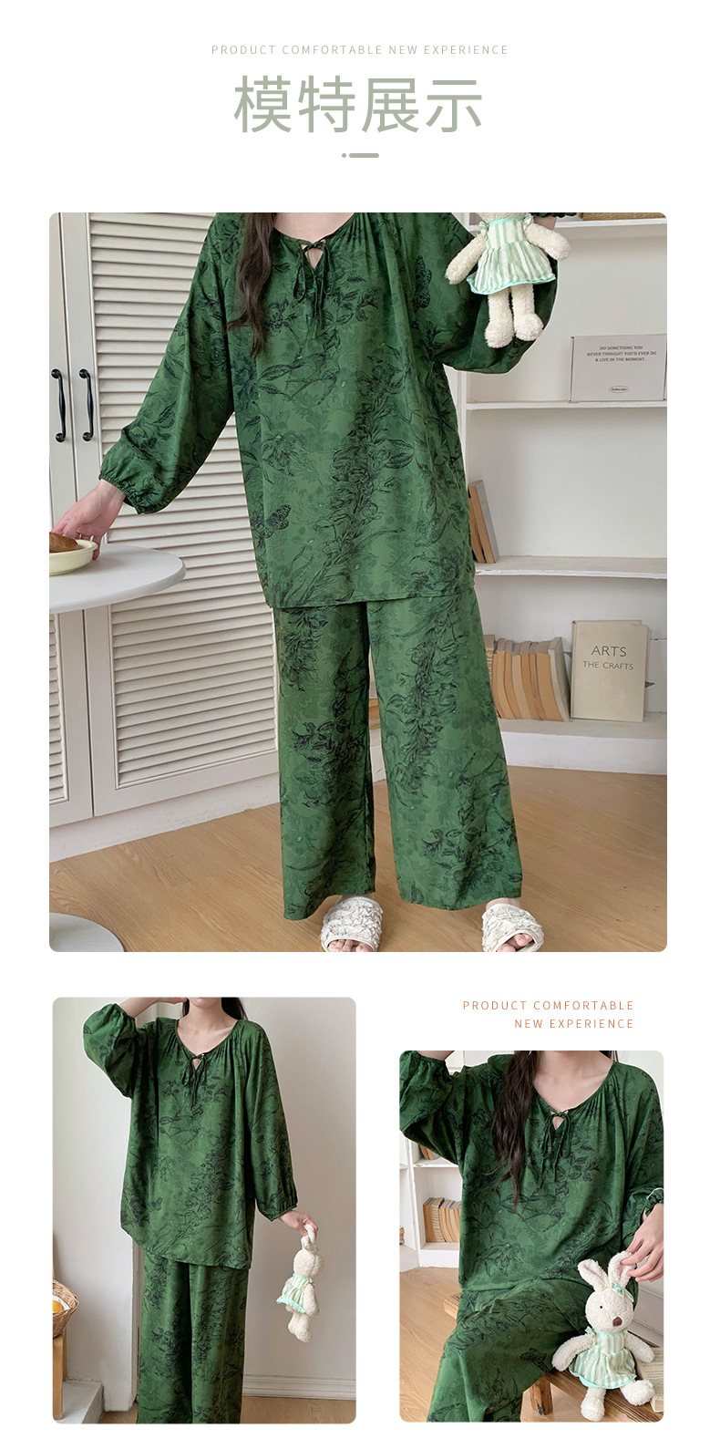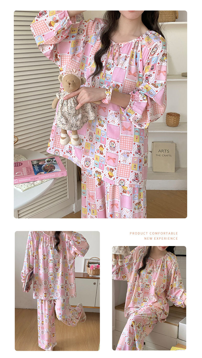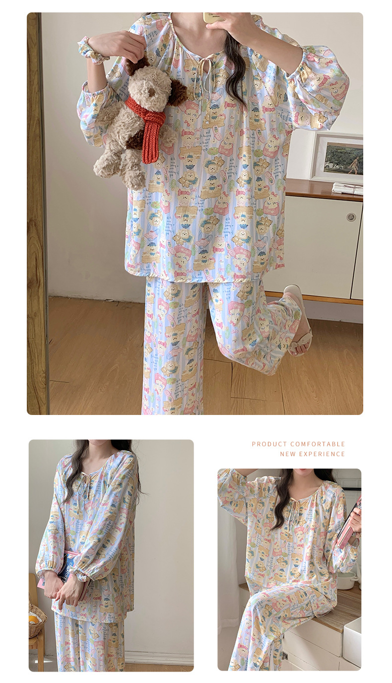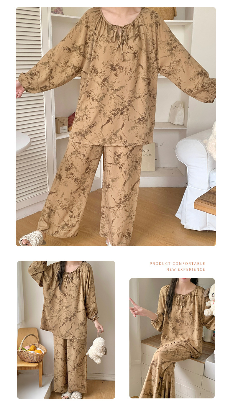 면 실크 잠옷 여성의 봄과 여름 새로운 플러스 사이즈 긴 소매 인쇄 세트 인터넷 축하 라이브 스타일 레이온 홈 옷 가을스토어 가기