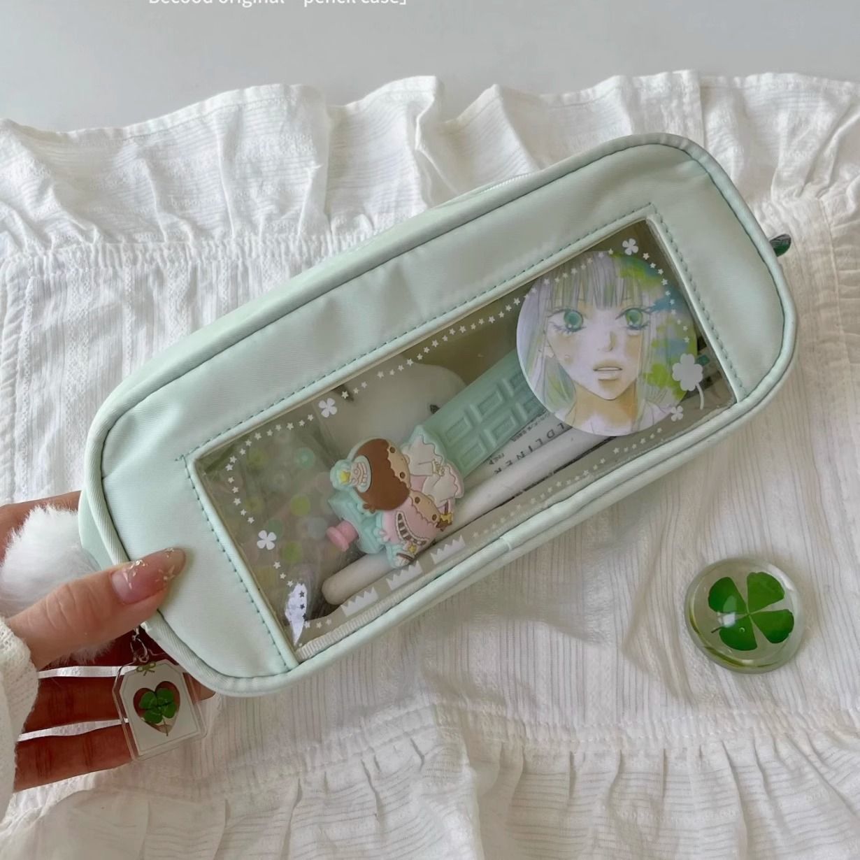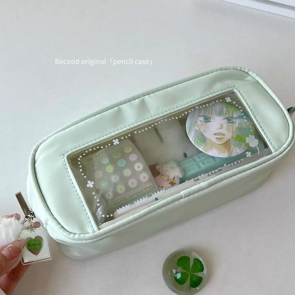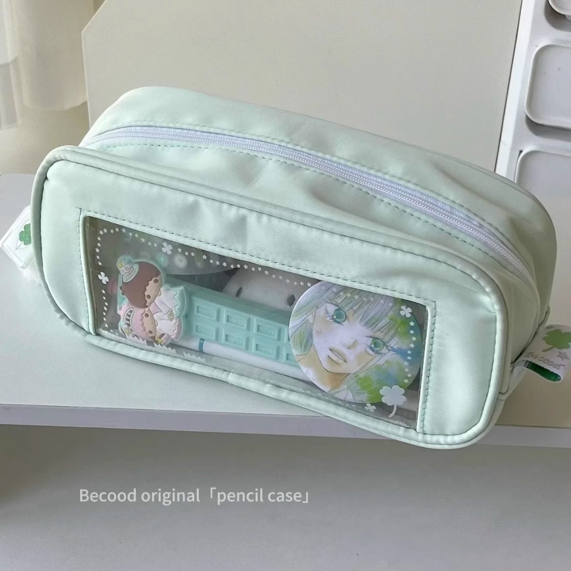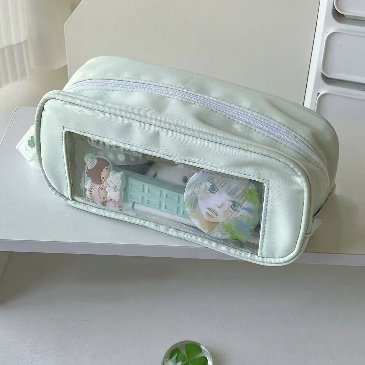 • 여아용 녹색 필통 1개, 단일 필통