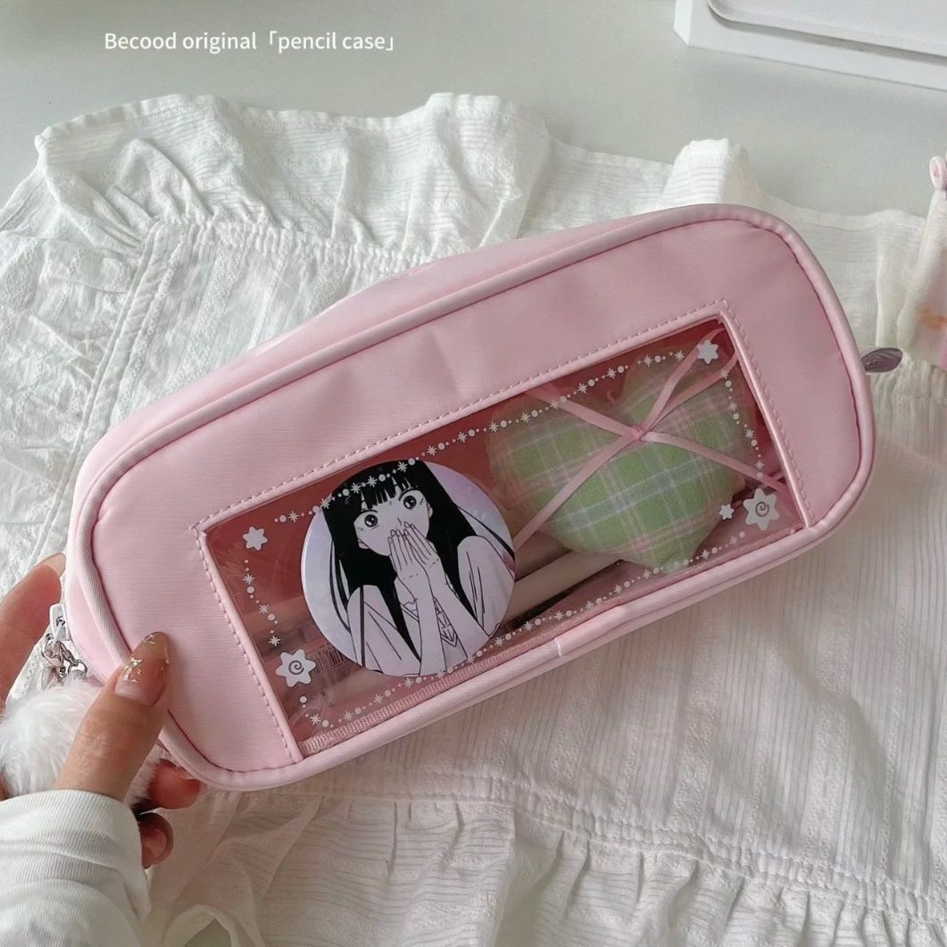 새로운 딸기 분말 통증 가방 작은 그룹 펜 가방 높은 색상 가치 소녀 공주 대용량 문구 저장 가방 학생