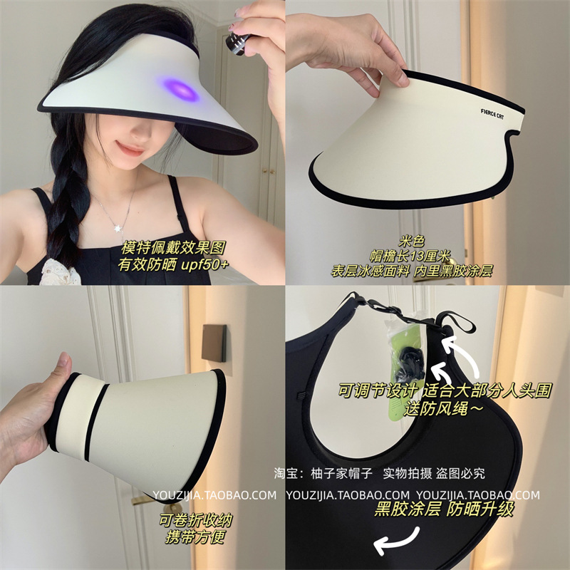 1 초 여름 ~ 아이스 실크 원 원활한 빅 브림 빈 탑 햇빛 모자 여성의 새로운 블랙 접착제 안티 UV 선 스크린 모자스토어 가기