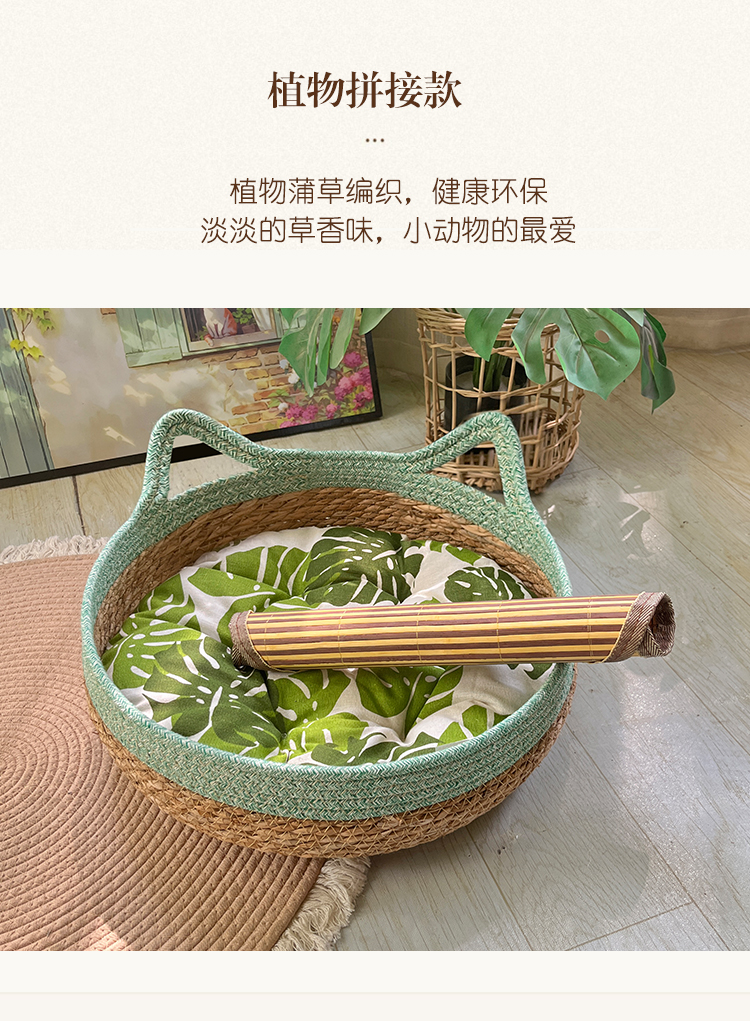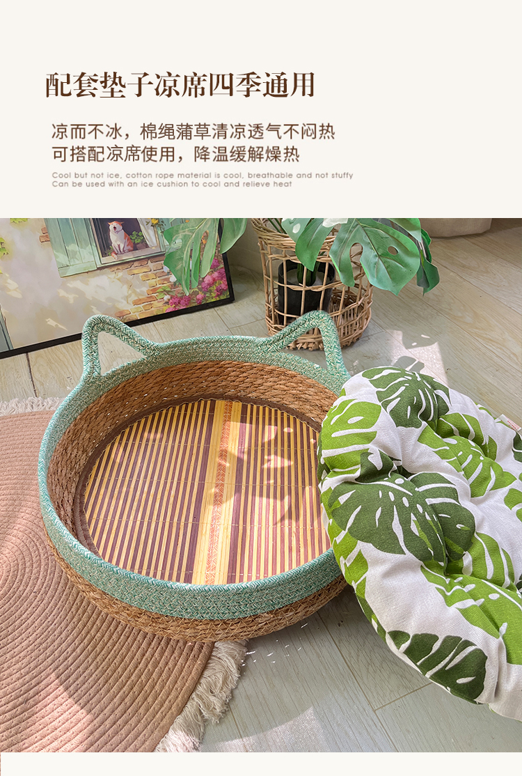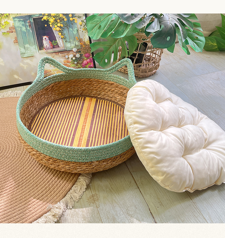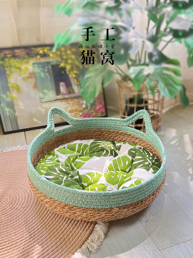 고양이 둥지 사계절 유니버설 여름 시원한 둥지 등나무 바구니 짠 고양이 스크래치 보드 손으로 슬리핑 이동식 및 세탁 가능한 여름 고양이 둥지